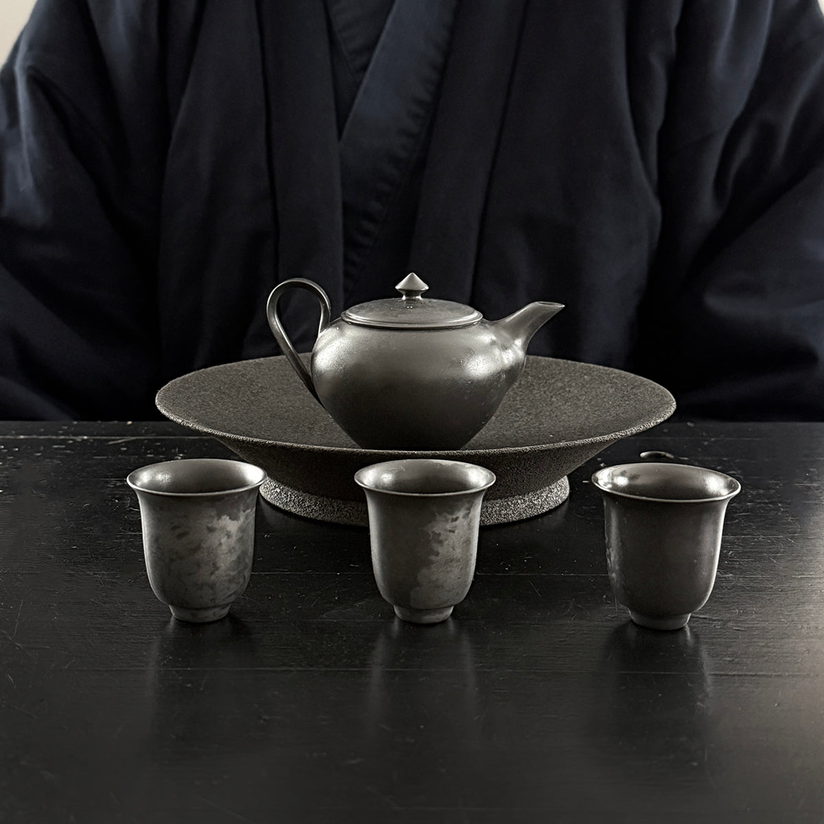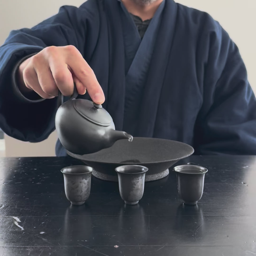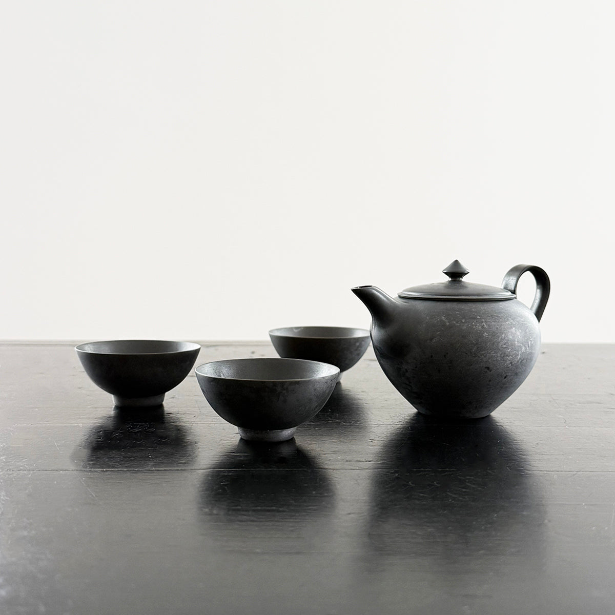 Special Edition Black Satin pieces are created by burying a white piece in a pile of rice husks and pit-firing it in a special "Saya" kiln. Only a small number can be fired at a time, and the unique patterns and gradation on the surface are the scorch marks left by the rice husks. Each piece is unique!