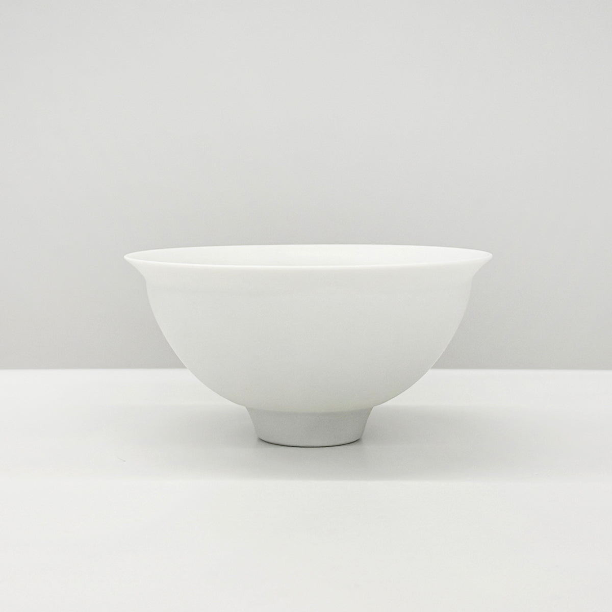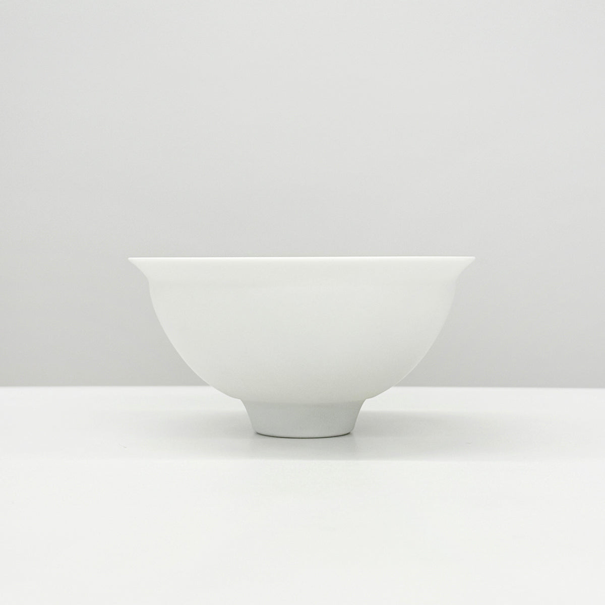 Kiyoko Morioka is an awarded art scholar specializing in the traditional craft of Kutani porcelain. Her creations feature a delicate and semi-translucent design, highlighting the stark elegance of the Kanazawa region's clay while omitting the ornate embellishments in signature Kutani ware. Each piece is wheel-thrown and crafted with technical precision, showcasing the clay's durability, texture, and radiant brilliance. Inspired by her time studying in Denmark, Morioka infuses modern elements into her traditional silhouettes. The velvety texture of her porcelain is achieved through a unique technique, creating a luxurious touch and an ultra-thin rim perfect for savoring tea. The translucent pieces allow the rich color of brewed tea to shine through, creating a truly mesmerizing experience.