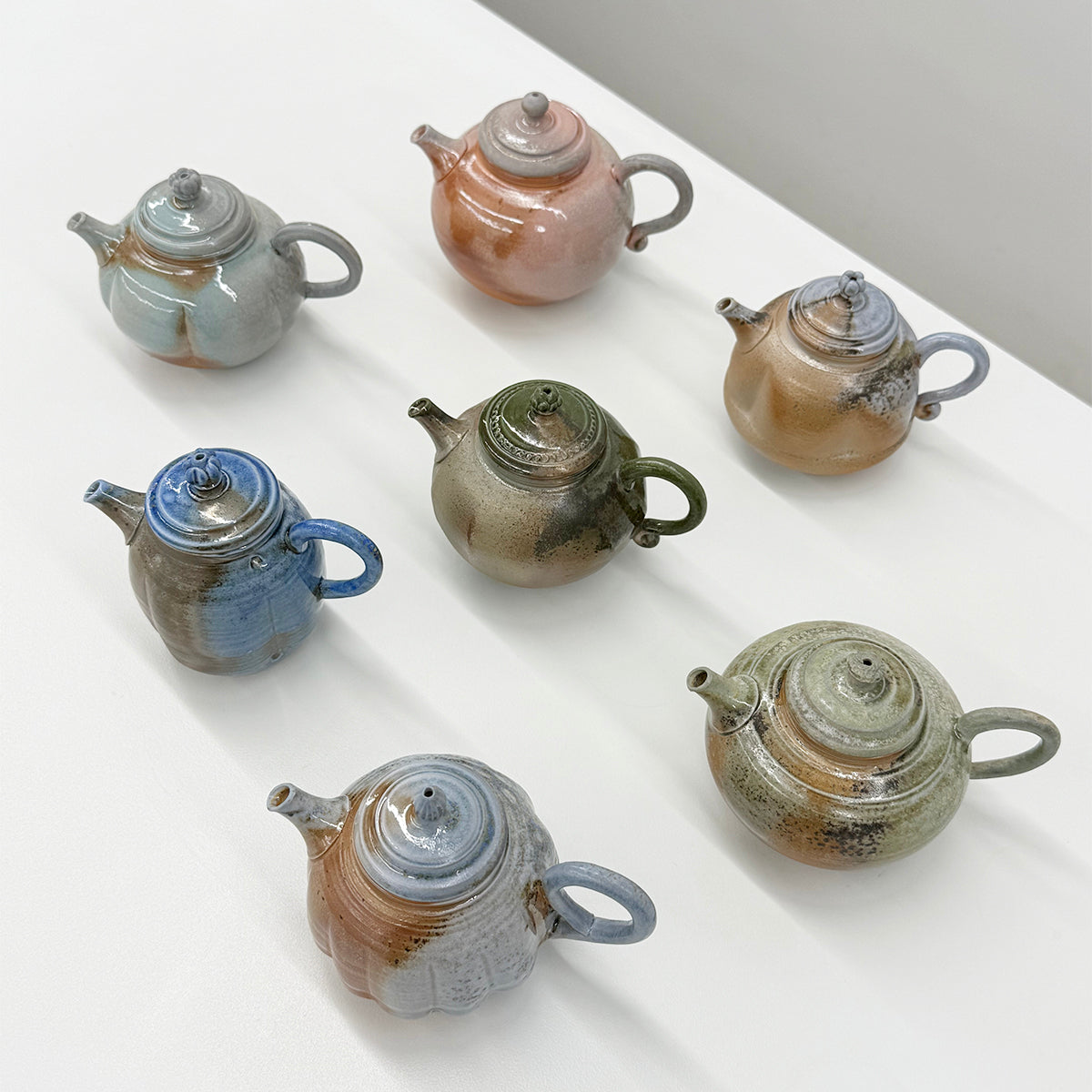 Teapot specialists are a rare breed! Making teapots requires a lot of experience, skill, and a strict work ethic. Each part—body, spout, strainer, lid, and handle—is wheel-thrown separately and assembled with perfect balance so liquid flows smoothly. Wood-fired teapots are the most challenging because the results are unpredictable, and at least 30% of them are destroyed by high heat or warping. However, the pieces that survive the fire are stunning. Every kyusu is unique and full of character. The salt-glazing technique produces a rainbow of colors, giving these perfect pieces a life of their own. Don't be fooled—these are perfect tools! Despite their appearance, they are incredibly lightweight, pour perfectly, and make every pot of tea taste better than the last.