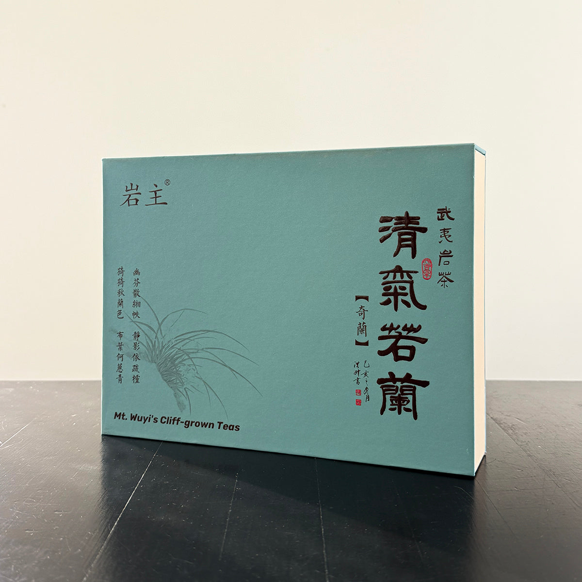 A Pure Demeanor, Like an Orchid's Fragrance, is the meaning of Qing Qi Ruo Lan. To harness this tea's floral potential it is processed using low temperature over an extended period to perfectly caramelize and bring forward beautiful incense notes. Both temperature extremes require a lot of experience to perform well. The Yan Yun Rock Rhyme of this tea is breathtaking.
