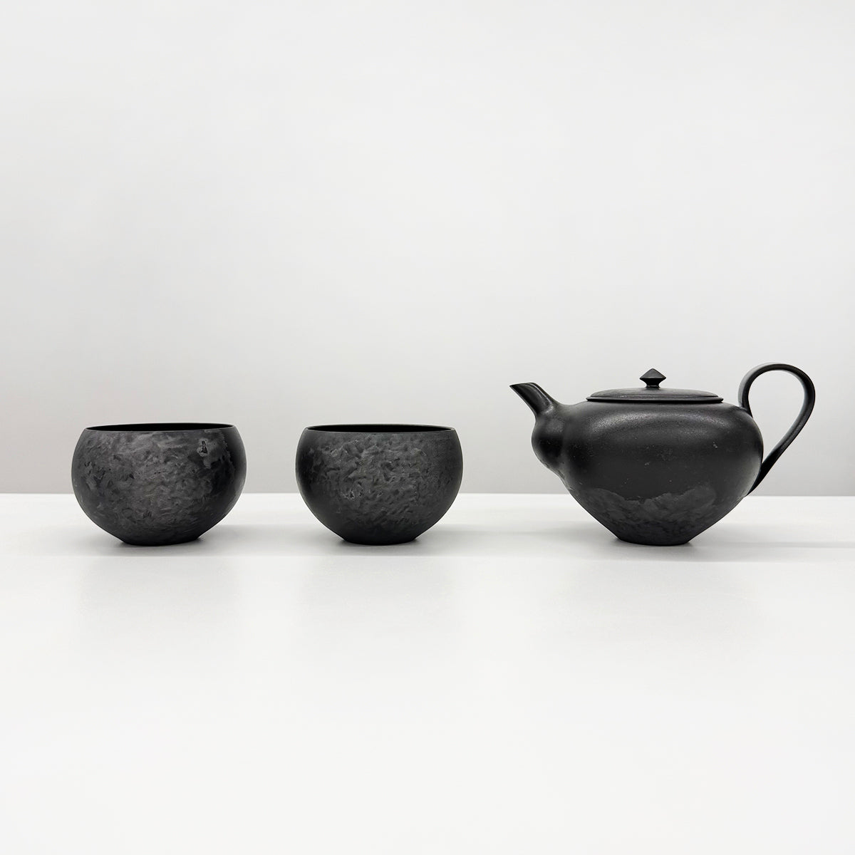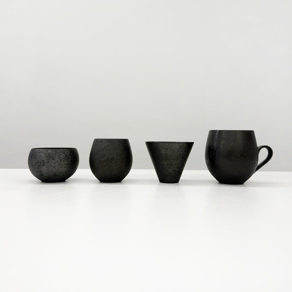 Special Edition Black Satin pieces are created by burying a white piece in a pile of rice husks and pit-firing it in a special "Saya" kiln. Only a small number can be fired at a time, and the unique patterns and gradation on the surface are the scorch marks left by the rice husks. Each piece is unique!