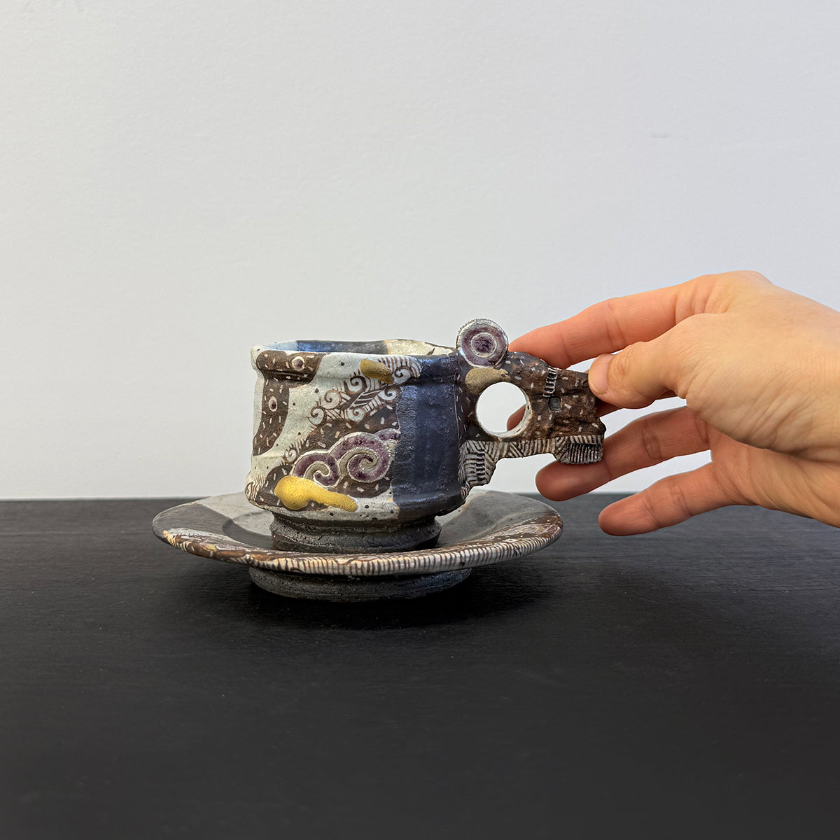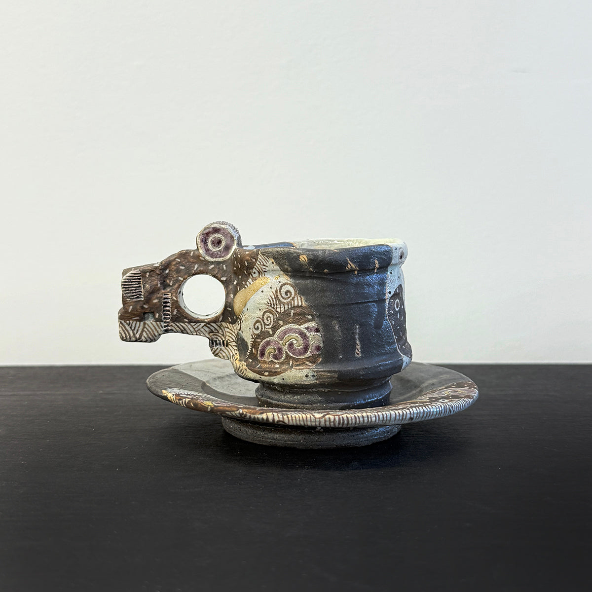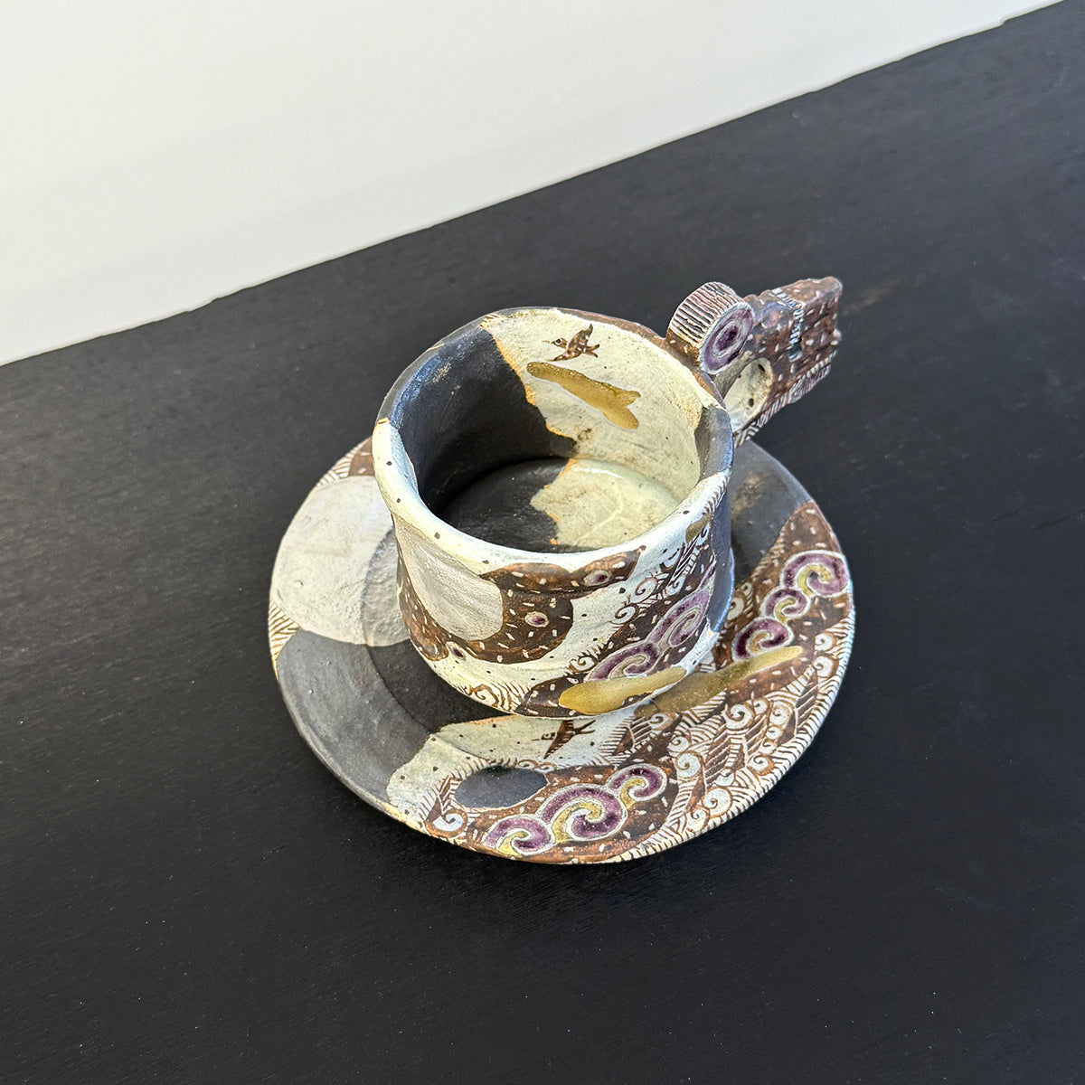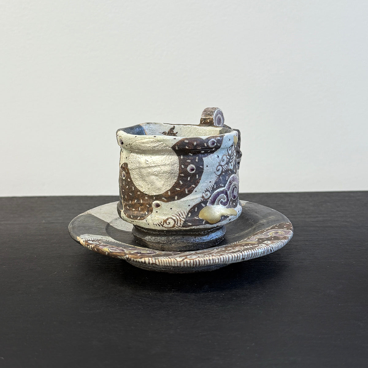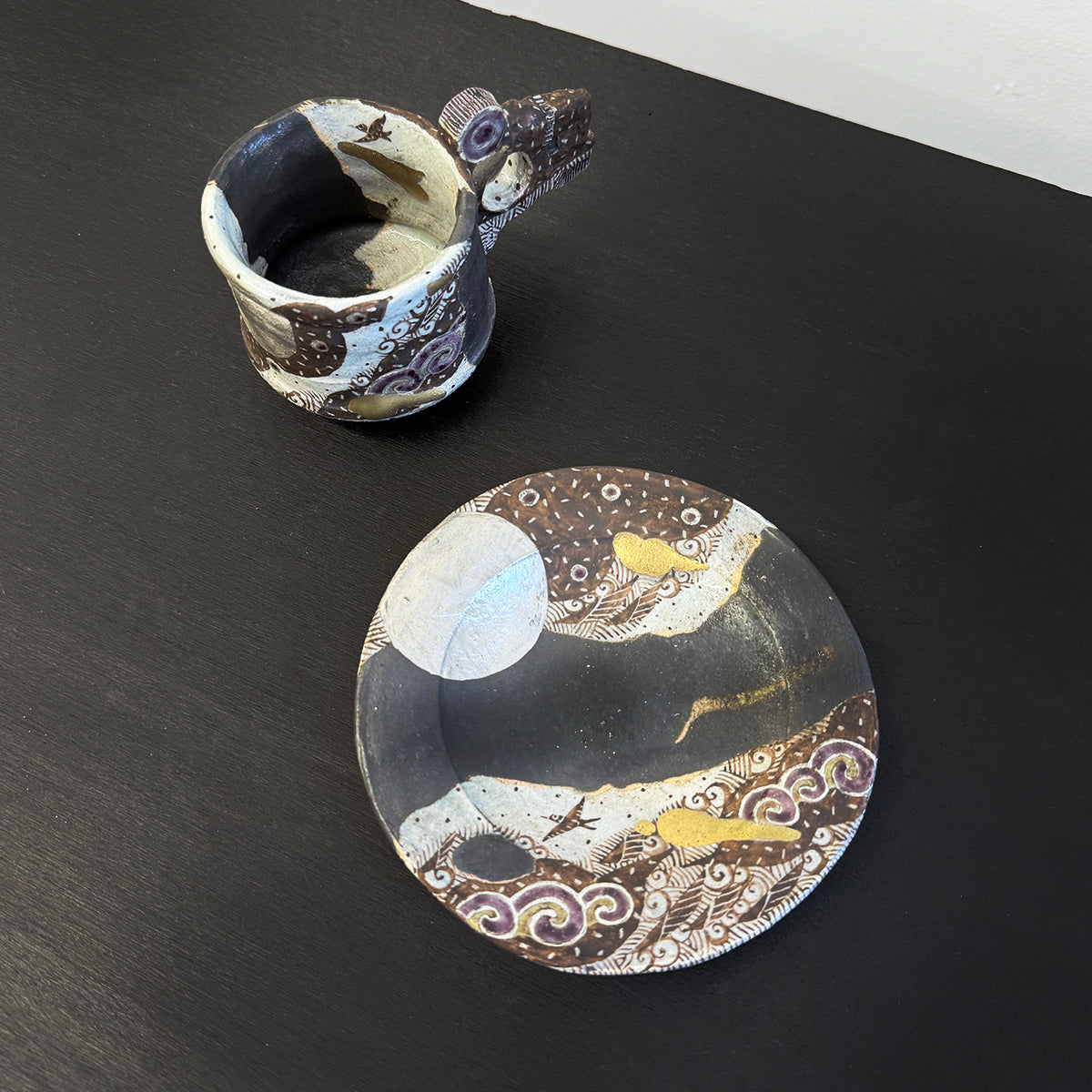 Celebrating our seventh Koji Usaka collection with a Solo Exhibition, one of the largest selections to be offered outside of Japan. Welcome to the magical world of Koji Usaka! Ceramic pieces are imbued with folklore and the imagination of this acclaimed potter, who has been creating functional artworks since 1980, when he established his first kiln in Tochigi, Japan. He and his wife and a sculptor, Yayoi, are most famous for their hand-painted Aka-e (red) or Seimon (multi-color) glazed ceramics that adorn masterfully crafted pieces. His works are instantly recognizable and contain a whole universe of their own. The designs often include a detailed arabesque pattern with the moon, clouds, mountains, and even forest creatures, making Hokkaido such a special place.