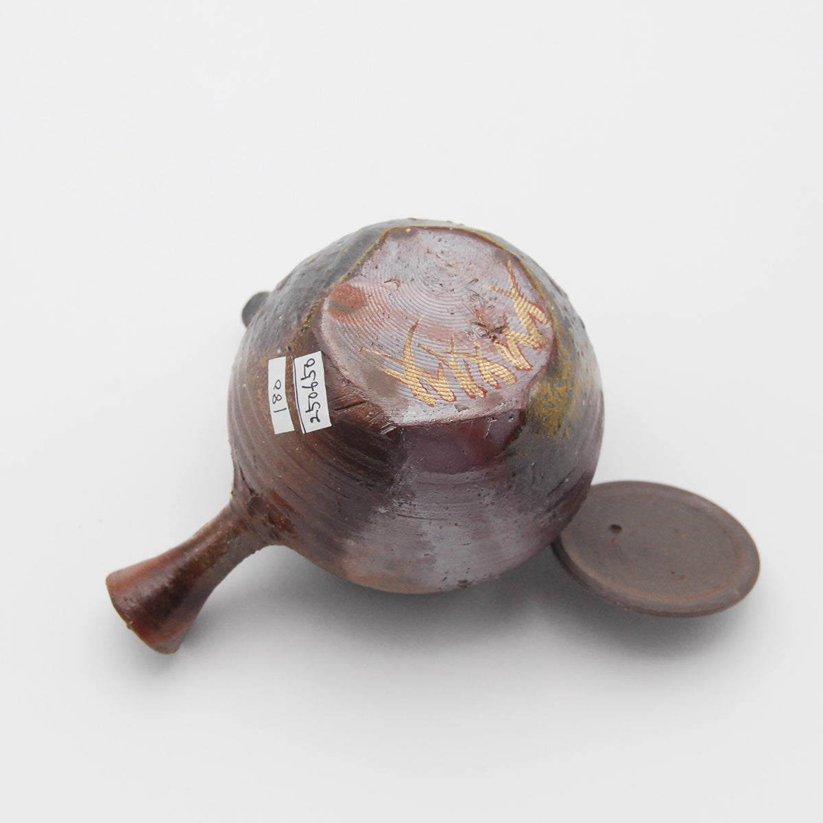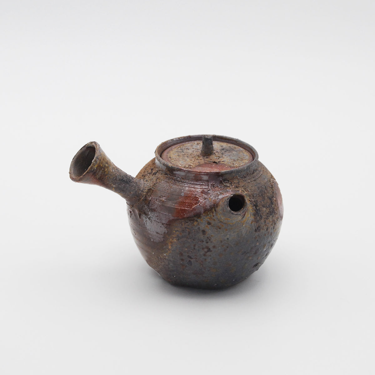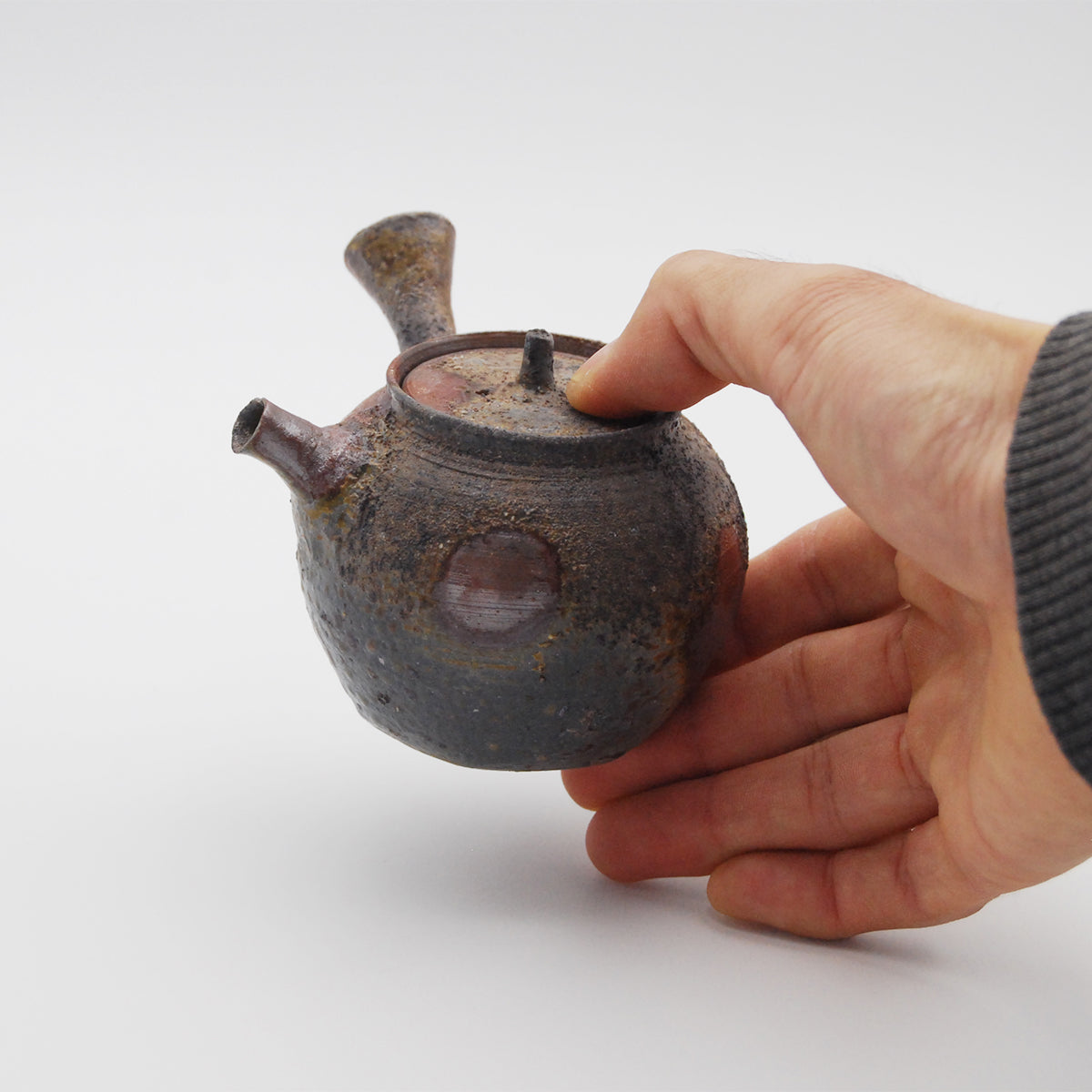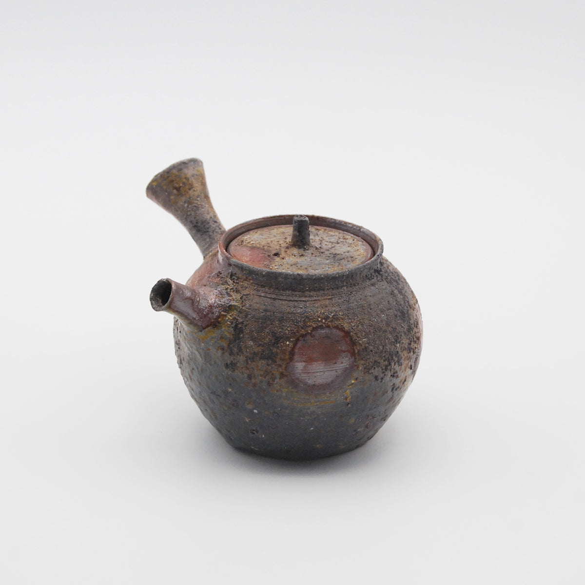 This exceptional Bizen teapot is a masterpiece that encapsulates the region's characteristic clay-making and specialized firing techniques. Its visual appearance is distinctly Bizen; however, its shape surpasses any other teapot crafted there. Each teapot is remarkably lightweight, weighing only 300 grams, and is equipped with a handcrafted strainer featuring 400 to 600 holes. The strainer is seamlessly integrated into the body's opening, ensuring an unobstructed flow that enhances the overall brewing experience. Every piece is unique, displaying melted ash textures, hidasuki rope markings, and red and black scorch marks. Every perspective reveals intricate details to be appreciated over time.