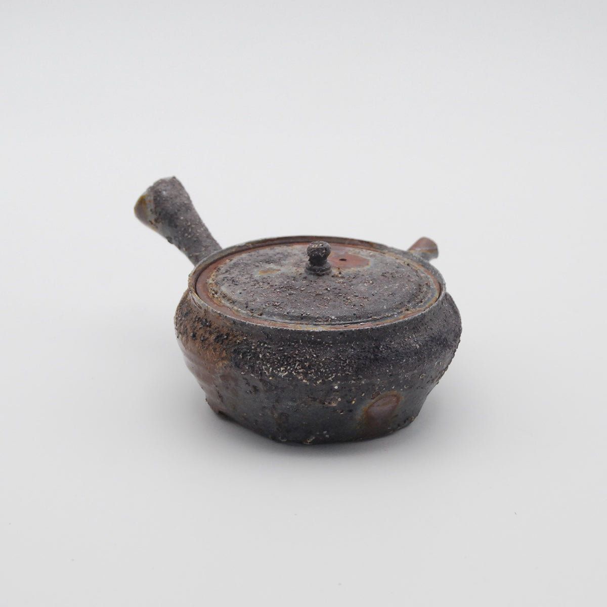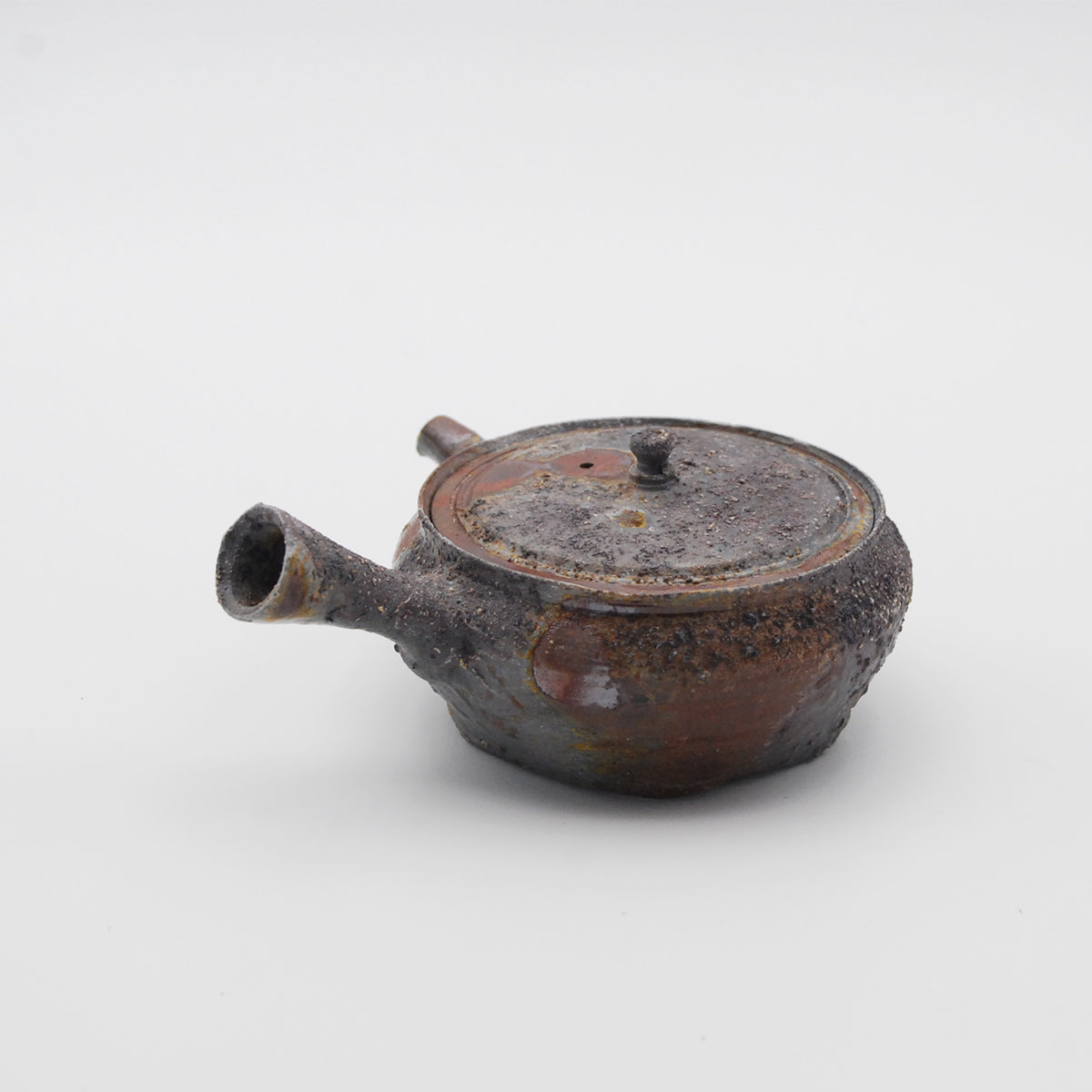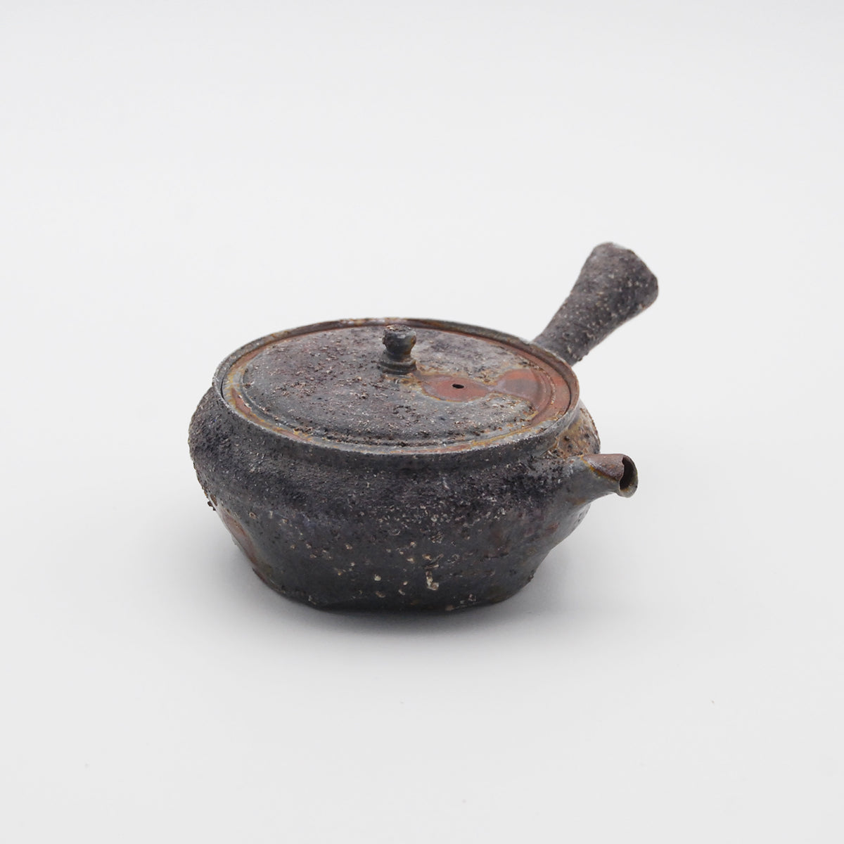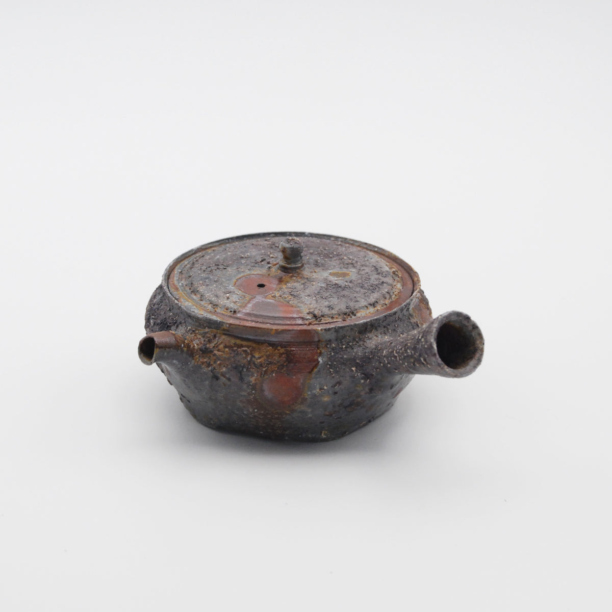 This exceptional Bizen teapot is a masterpiece that encapsulates the region's characteristic clay-making and specialized firing techniques. Its visual appearance is distinctly Bizen; however, its shape surpasses any other teapot crafted there. Each teapot is remarkably lightweight, weighing only 300 grams, and is equipped with a handcrafted strainer featuring 400 to 600 holes. The strainer is seamlessly integrated into the body's opening, ensuring an unobstructed flow that enhances the overall brewing experience. Every piece is unique, displaying melted ash textures, hidasuki rope markings, and red and black scorch marks. Every perspective reveals intricate details to be appreciated over time.