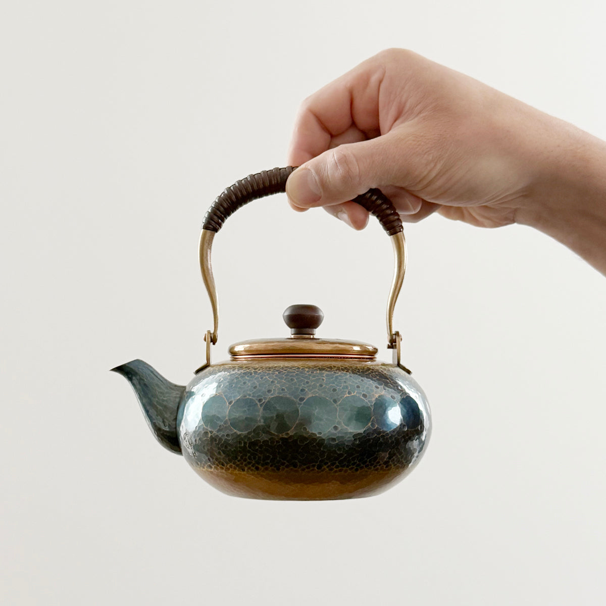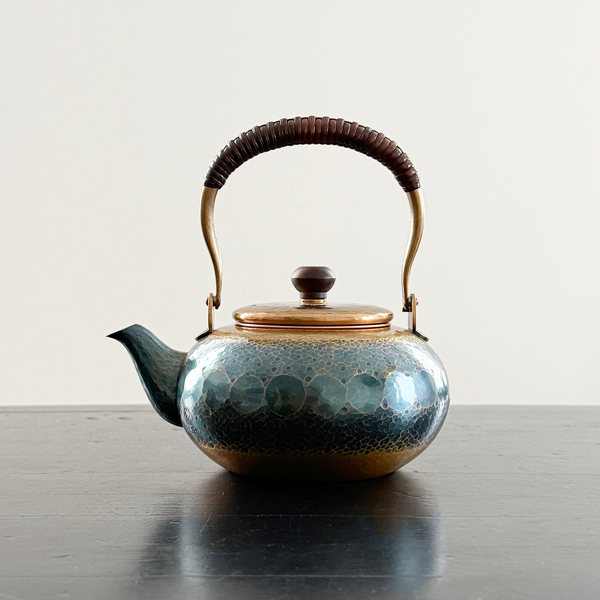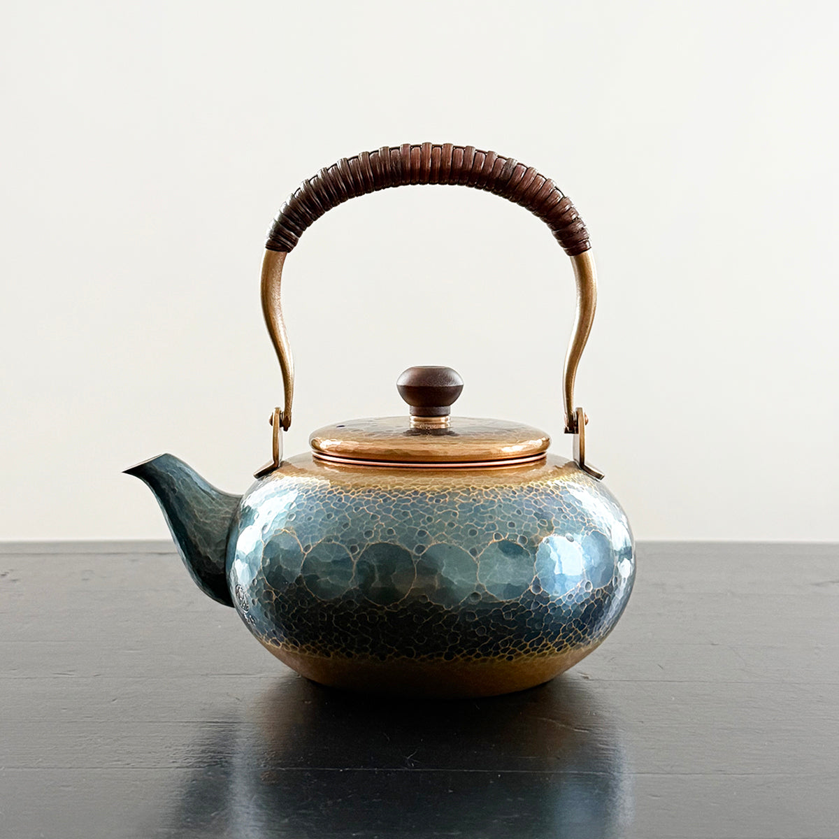 Crafted with a timeless, elegant design, this teapot efficiently retains high temperatures, making it perfect for dark or aged teas. The general rule of practice for teapots is that the higher the quality of the tea, the smaller the brewing vessel, to create a more concentrated taste through shorter steepings and to thoroughly enjoy each successive brewing. This teapot features a removable copper basket strainer. The textured body showcases delicate hammer marks and a rustic handle adorned in bamboo. As it is used regularly, the teapot will develop a one-of-a-kind patina, giving it a unique charm. The natural patina is not painted on; it is created through a traditional process using raw copper.