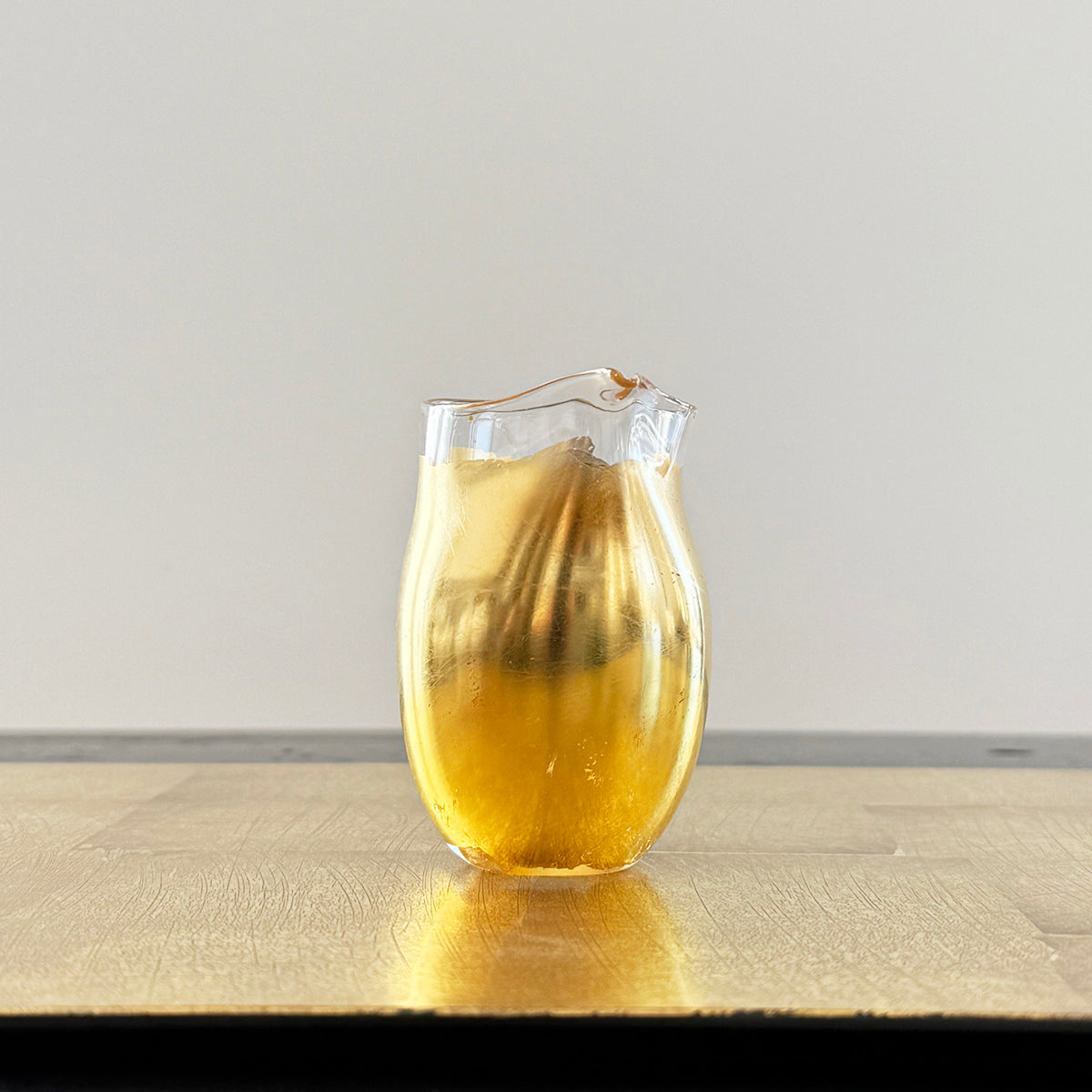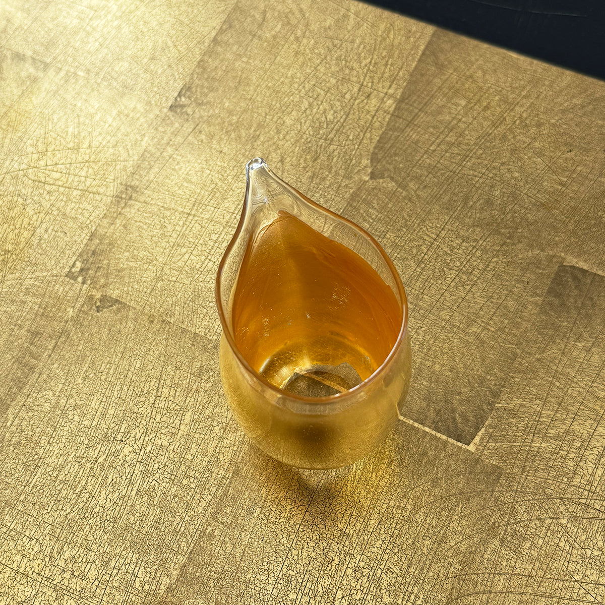 Each piece is hand-blown and made of soda-lime glass and gold foil.