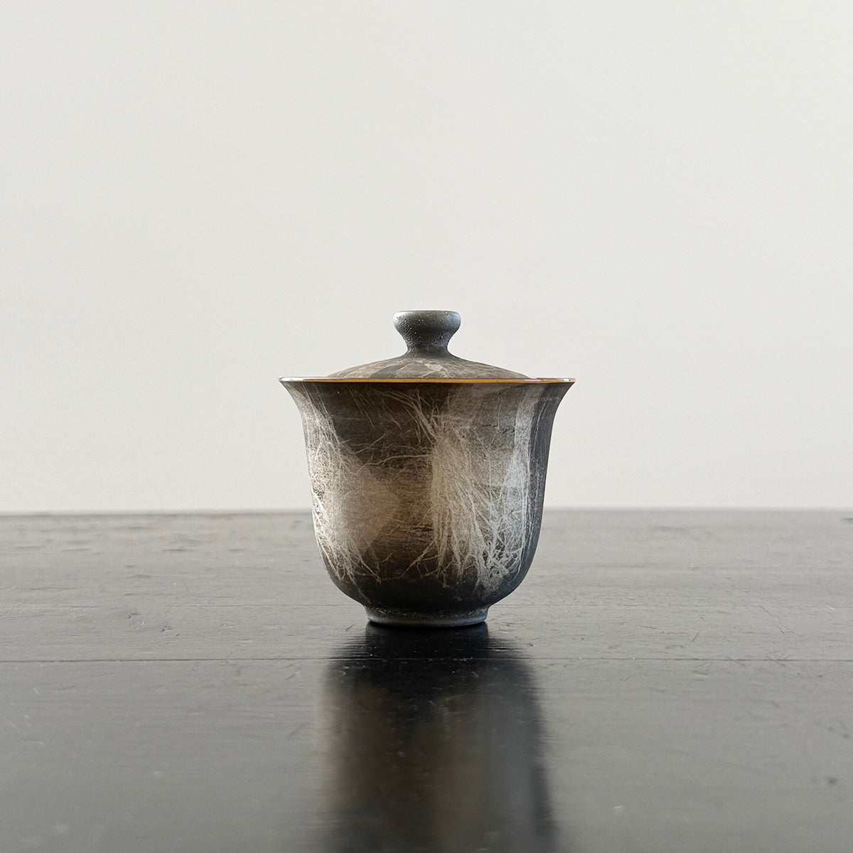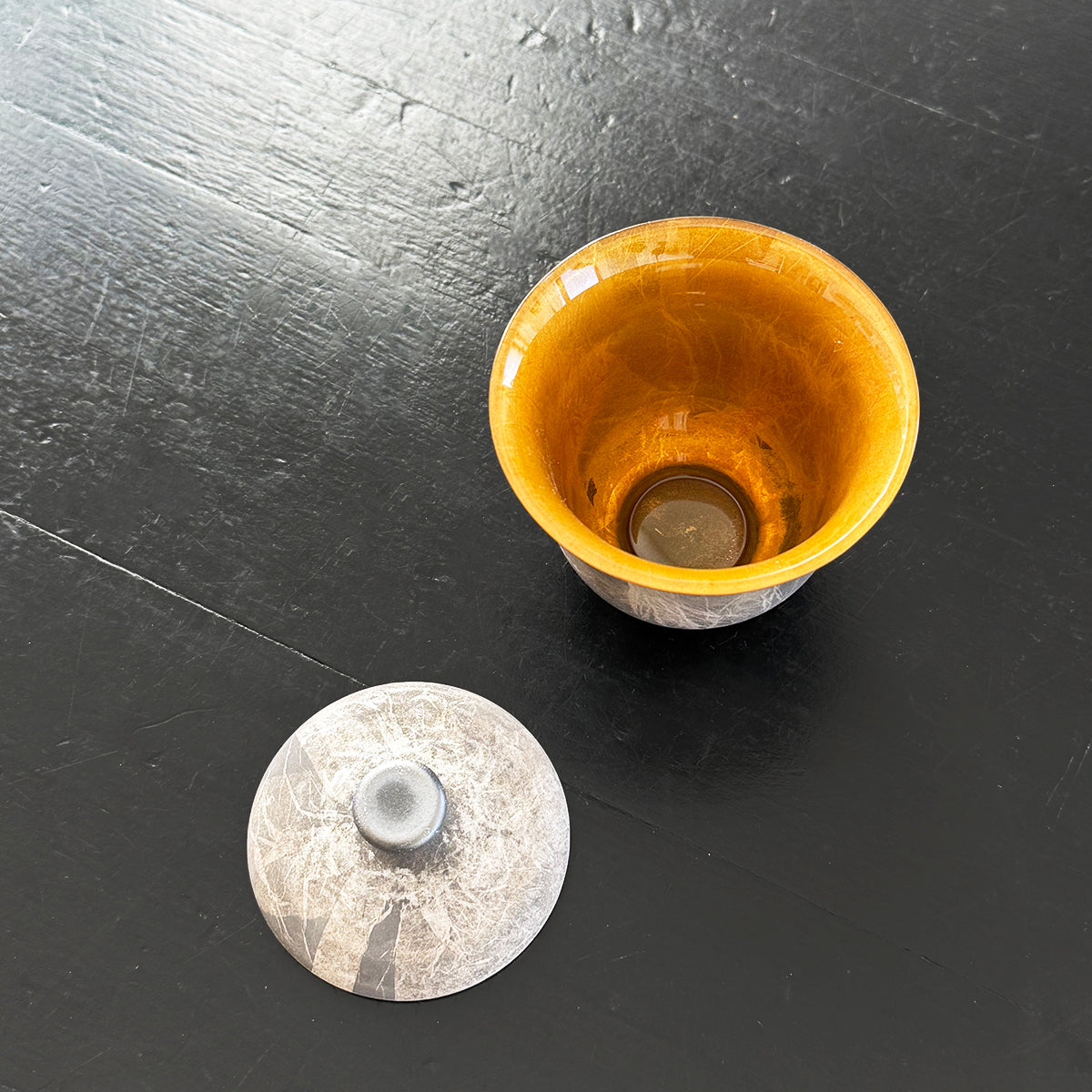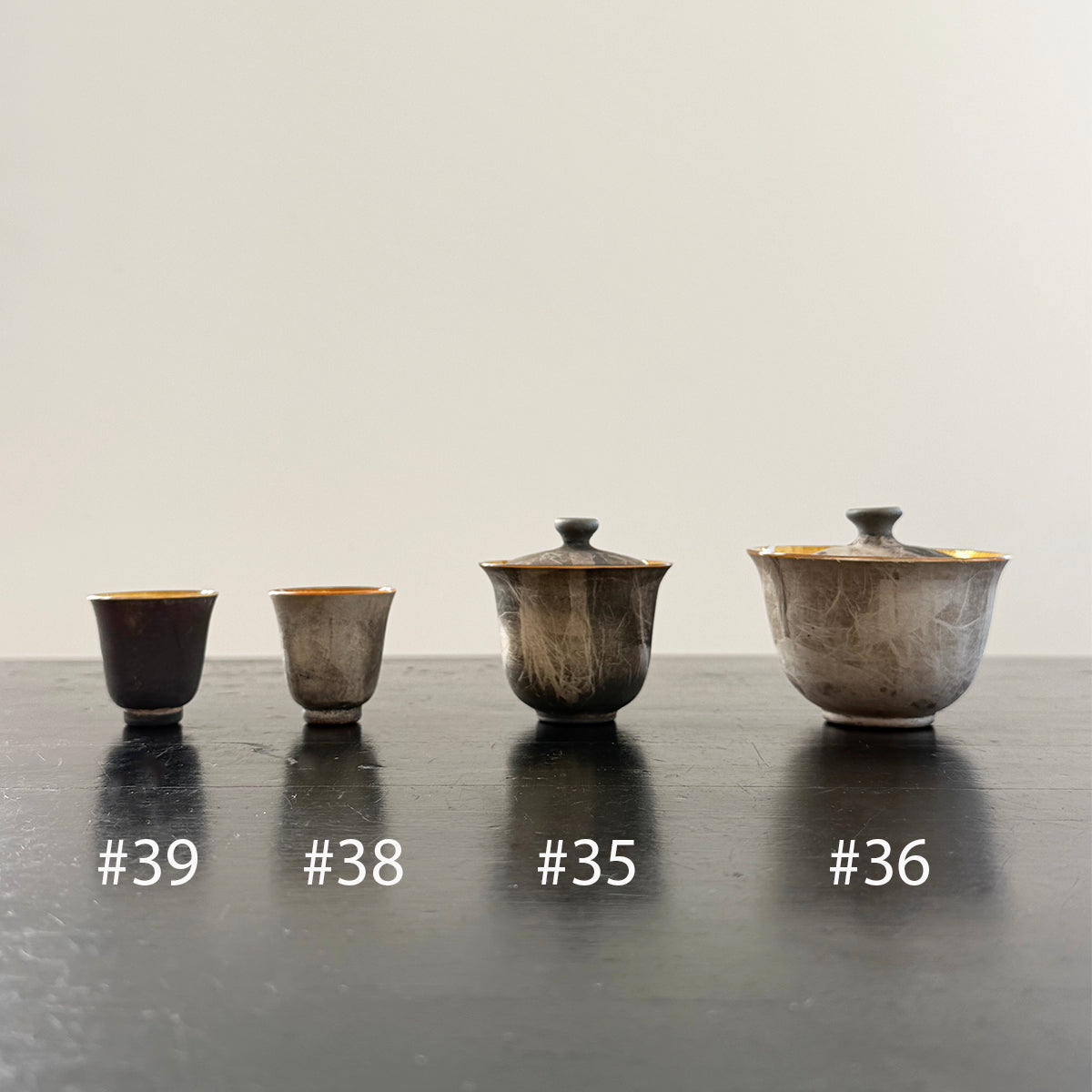 Gong-fu style pieces are intended for the traditional Chinese tea and Japanese Sencha ceremony, as the teapots, cups, and pitchers are very small. Smaller vessels heighten the sensory experience and are preferred for our tastings. Each piece is formed using the lampworking technique and is made of high borosilicate heat-resistant glass and gold and silver foil.