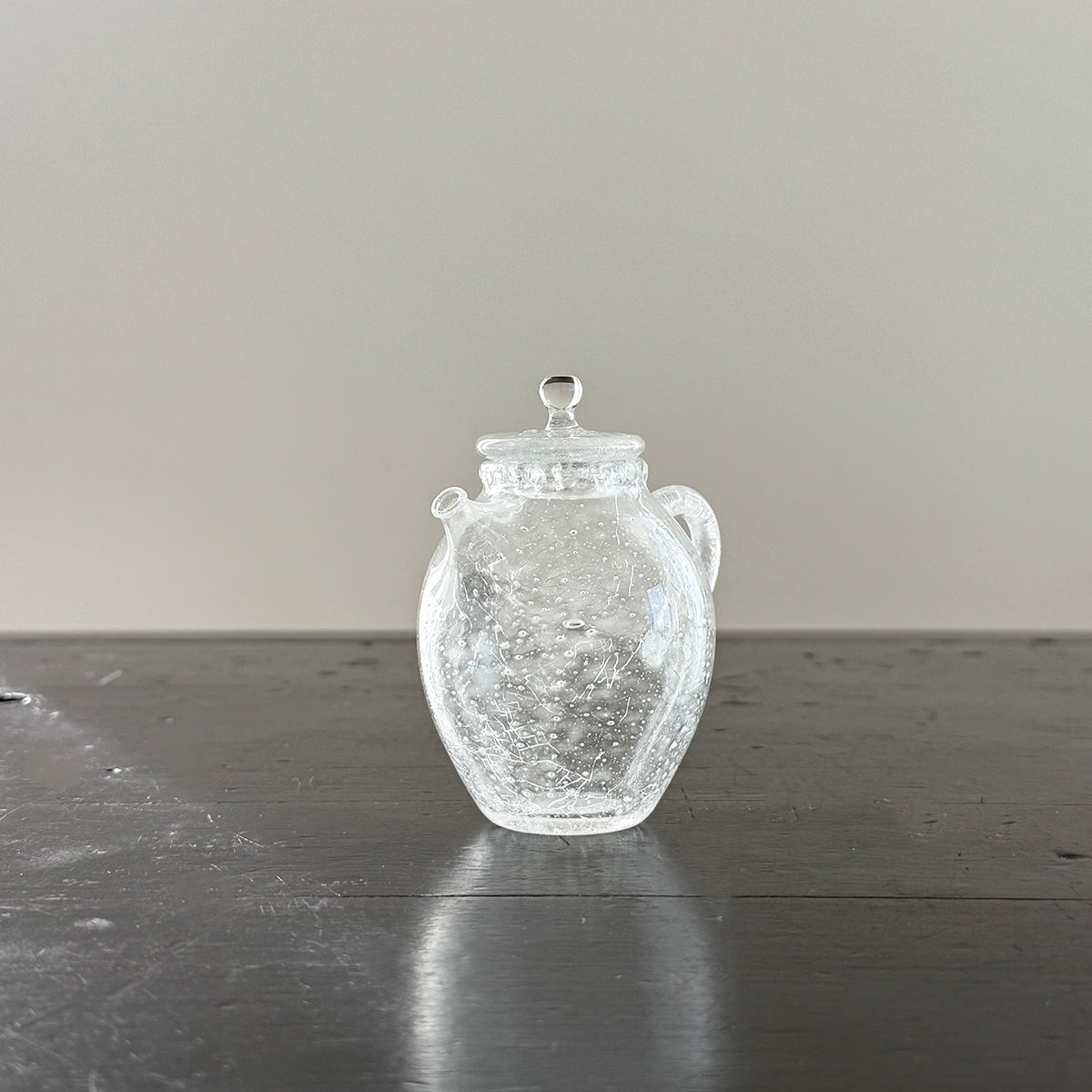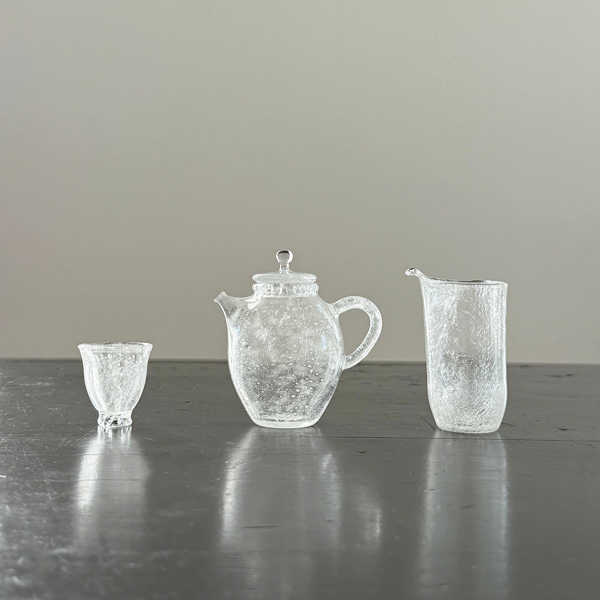Gong-fu style pieces are intended for the traditional Chinese tea and Japanese Sencha ceremony, as the teapots, cups, and pitchers are very small. Smaller vessels heighten the sensory experience and are preferred for our tastings. Each piece is formed using the lampworking technique and is made of high borosilicate heat-resistant glass.