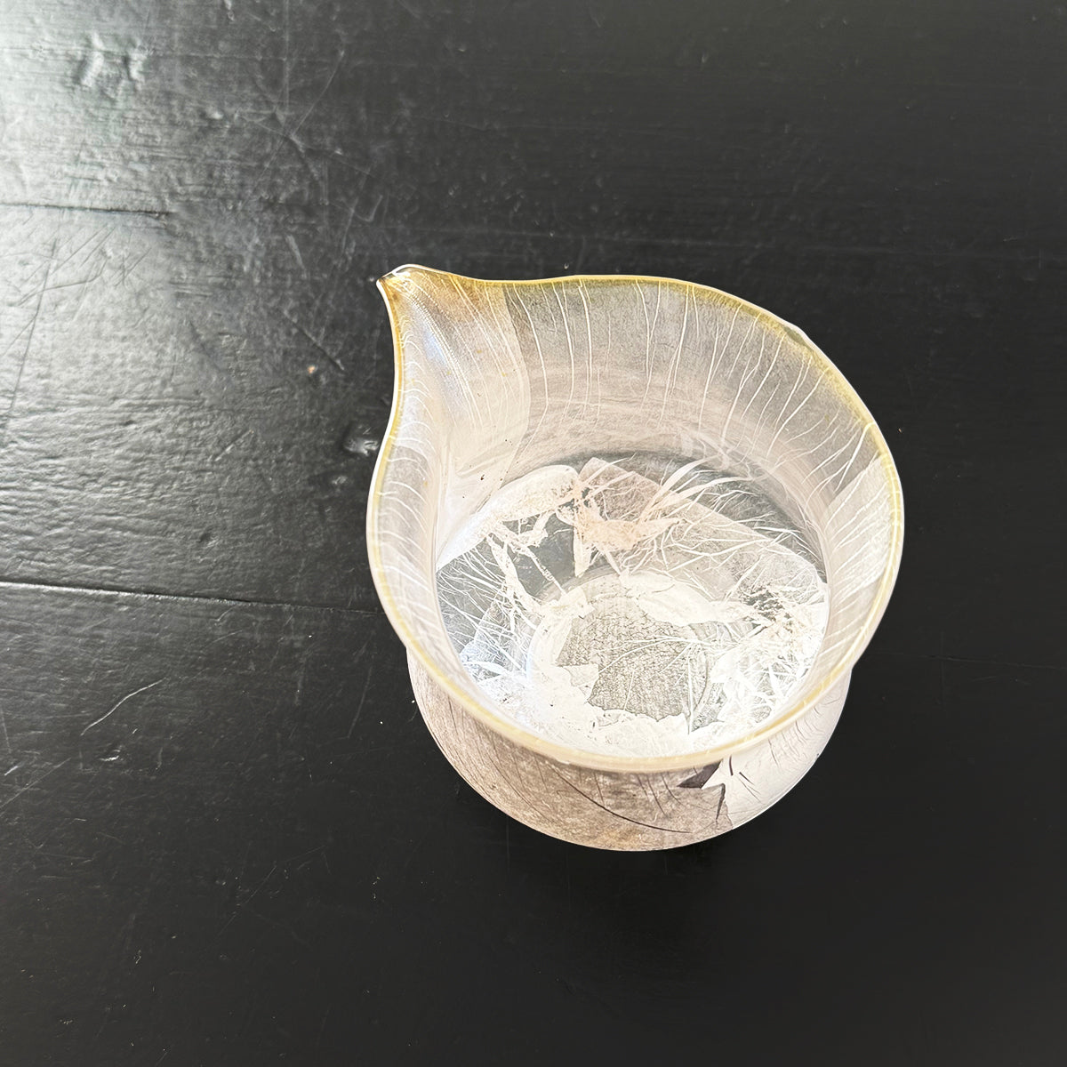 Each piece is hand-blown and made of soda-lime heat-resistant glass and silver foil.