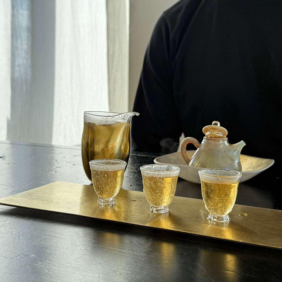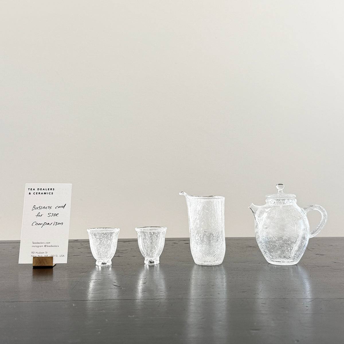 Gong-fu style pieces are intended for the traditional Chinese tea and Japanese Sencha ceremony, as the teapots, cups, and pitchers are very small. Smaller vessels heighten the sensory experience and are preferred for our tastings. Each piece is formed using the lampworking technique and is made of high borosilicate heat-resistant glass.