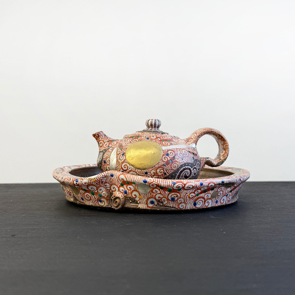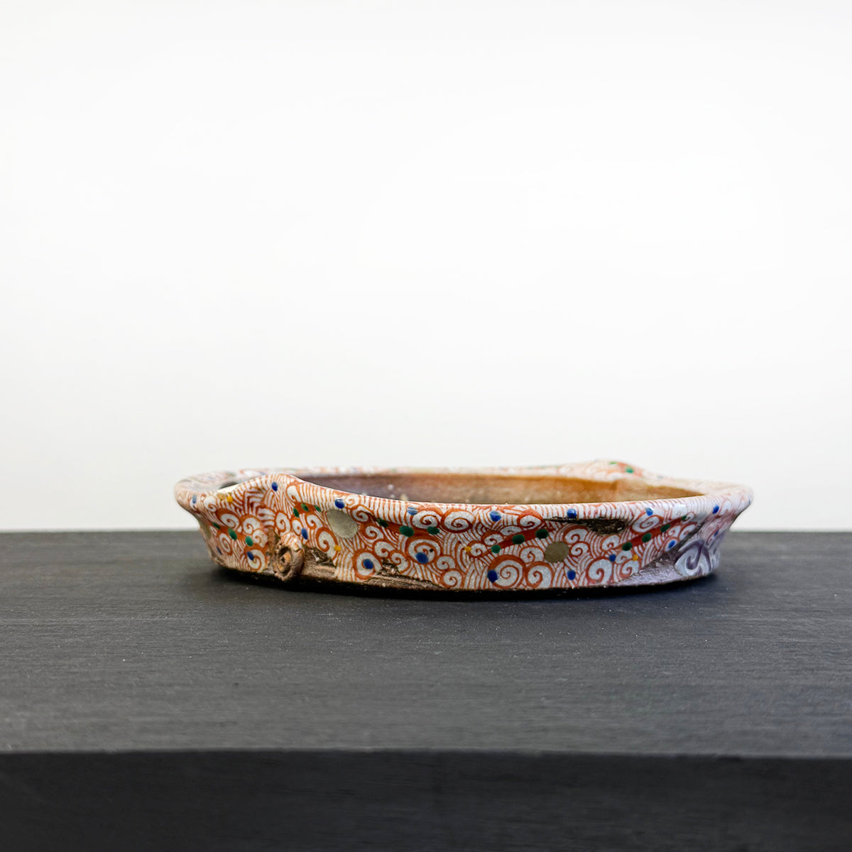Celebrating our seventh Koji Usaka collection with a Solo Exhibition, one of the largest selections to be offered outside of Japan. Welcome to the magical world of Koji Usaka! Ceramic pieces are imbued with folklore and the imagination of this acclaimed potter, who has been creating functional artworks since 1980, when he established his first kiln in Tochigi, Japan. He and his wife and a sculptor, Yayoi, are most famous for their hand-painted Aka-e (red) or Seimon (multi-color) glazed ceramics that adorn masterfully crafted pieces. His works are instantly recognizable and contain a whole universe of their own. The designs often include a detailed arabesque pattern with the moon, clouds, mountains, and even forest creatures, making Hokkaido such a special place.