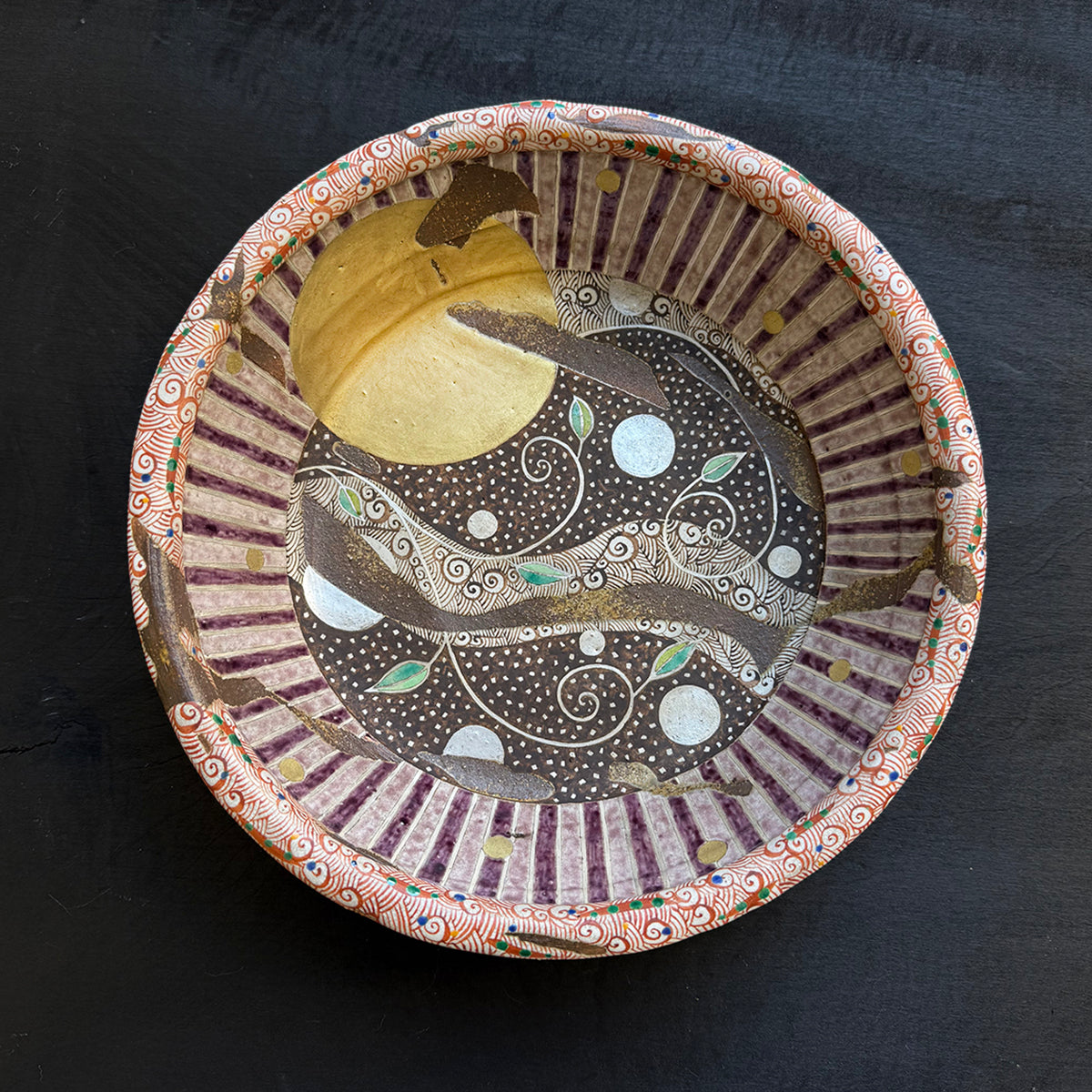 Celebrating our seventh Koji Usaka collection with a Solo Exhibition, one of the largest selections to be offered outside of Japan. Welcome to the magical world of Koji Usaka! Ceramic pieces are imbued with folklore and the imagination of this acclaimed potter, who has been creating functional artworks since 1980, when he established his first kiln in Tochigi, Japan. He and his wife and a sculptor, Yayoi, are most famous for their hand-painted Aka-e (red) or Seimon (multi-color) glazed ceramics that adorn masterfully crafted pieces. His works are instantly recognizable and contain a whole universe of their own. The designs often include a detailed arabesque pattern with the moon, clouds, mountains, and even forest creatures, making Hokkaido such a special place.