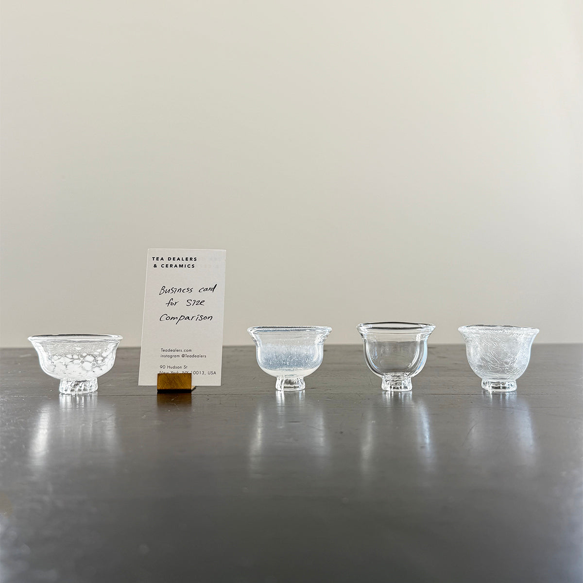 Gong-fu style pieces are intended for the traditional Chinese tea and Japanese Sencha ceremony, as the teapots, cups, and pitchers are very small. Smaller vessels heighten the sensory experience and are preferred for our tastings. Each piece is formed using the lampworking technique and is made of high borosilicate heat-resistant glass.