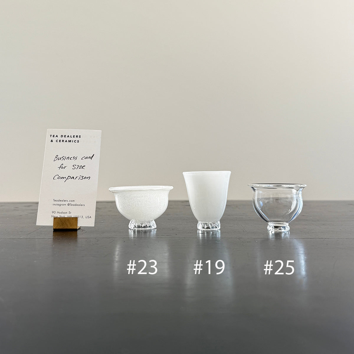 No box available. Glass is not dishwasher safe and is suitable for tea. Avoid thermal shock by exposing cold glass to extremely hot/cold temperatures; the nature of hand-blown glass creates differences in size, shape, and bubble/cracking effects. Please check the dimensions and capacity, as items are smaller than they appear.