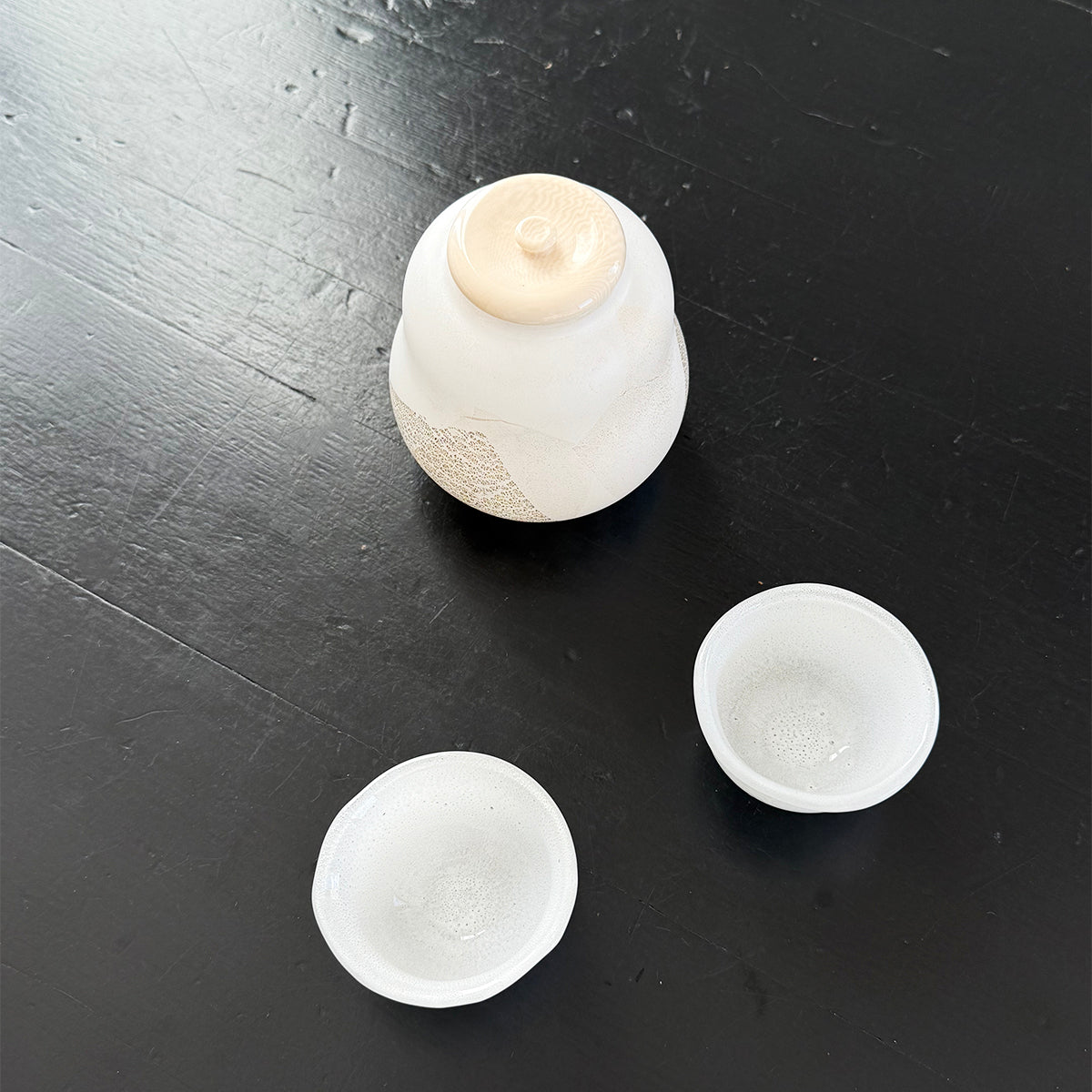 Gong-fu style pieces are intended for the traditional Chinese tea and Japanese Sencha ceremony, as the teapots, cups, and pitchers are very small. Smaller vessels heighten the sensory experience and are preferred for our tastings. Each piece is formed using the lampworking technique and is made of high borosilicate heat-resistant glass.