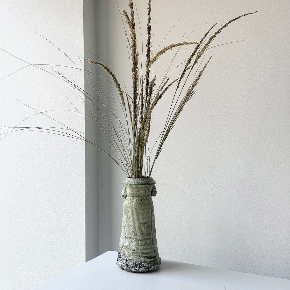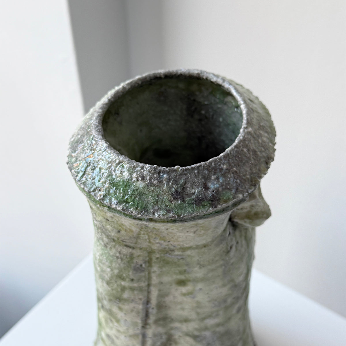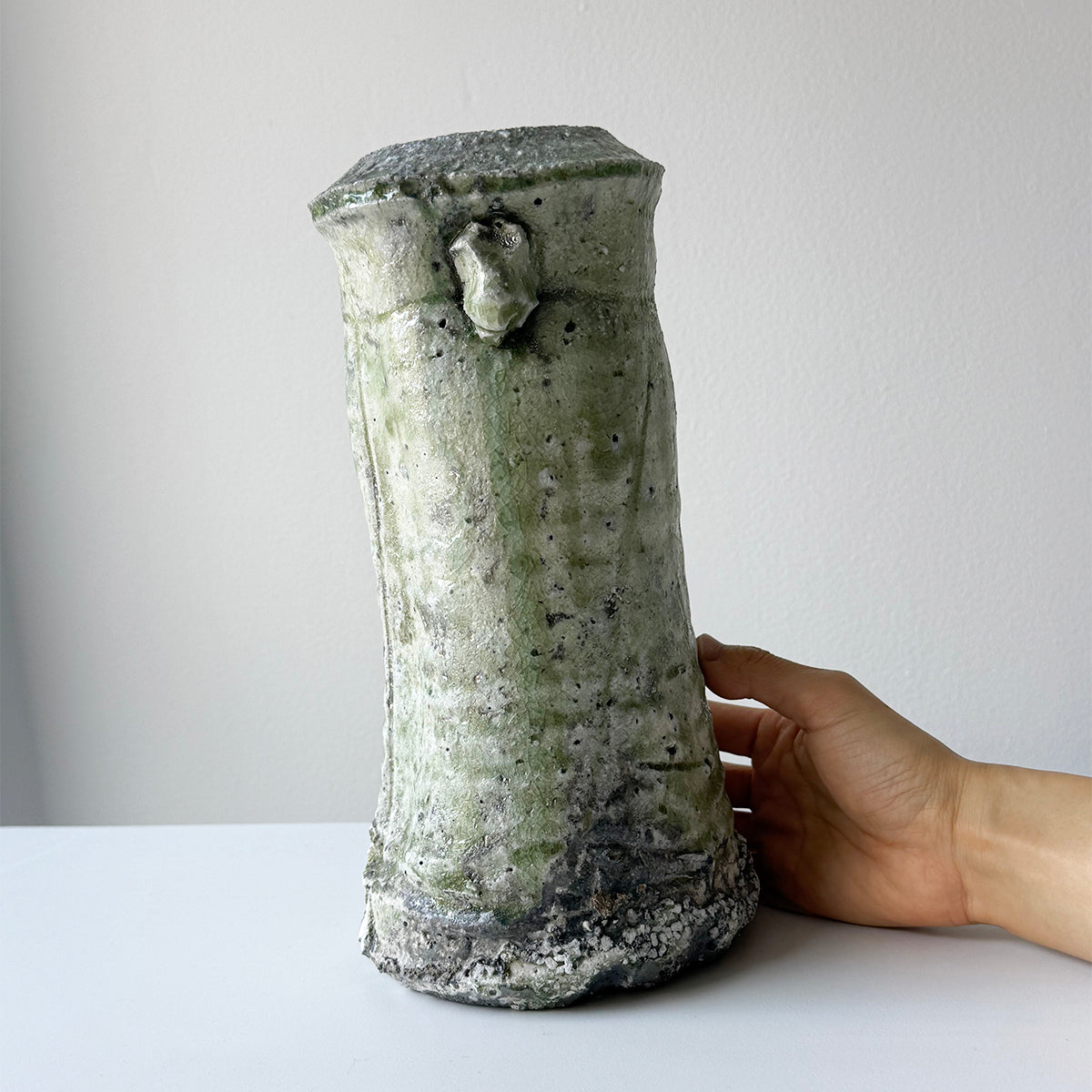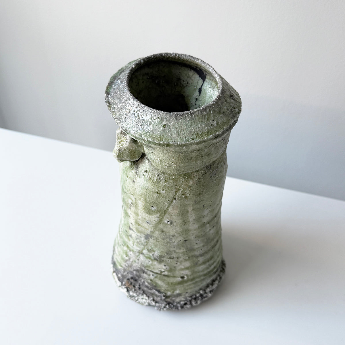 Yui Tsujimura, the son of renowned potter Shiro Tsujimura, found his passion for pottery right after finishing high school. In 2000, he set up his studio near his parents' home, deeply influenced by his family's love for ancient ceramics, especially Sue ware from the Sanage region. Drawing inspiration from this, Yui devised a unique technique of applying natural glaze to Sue pottery. He fires his pieces in a self-constructed underground kiln using his original firing method, creating a distinctive green luminescence.
