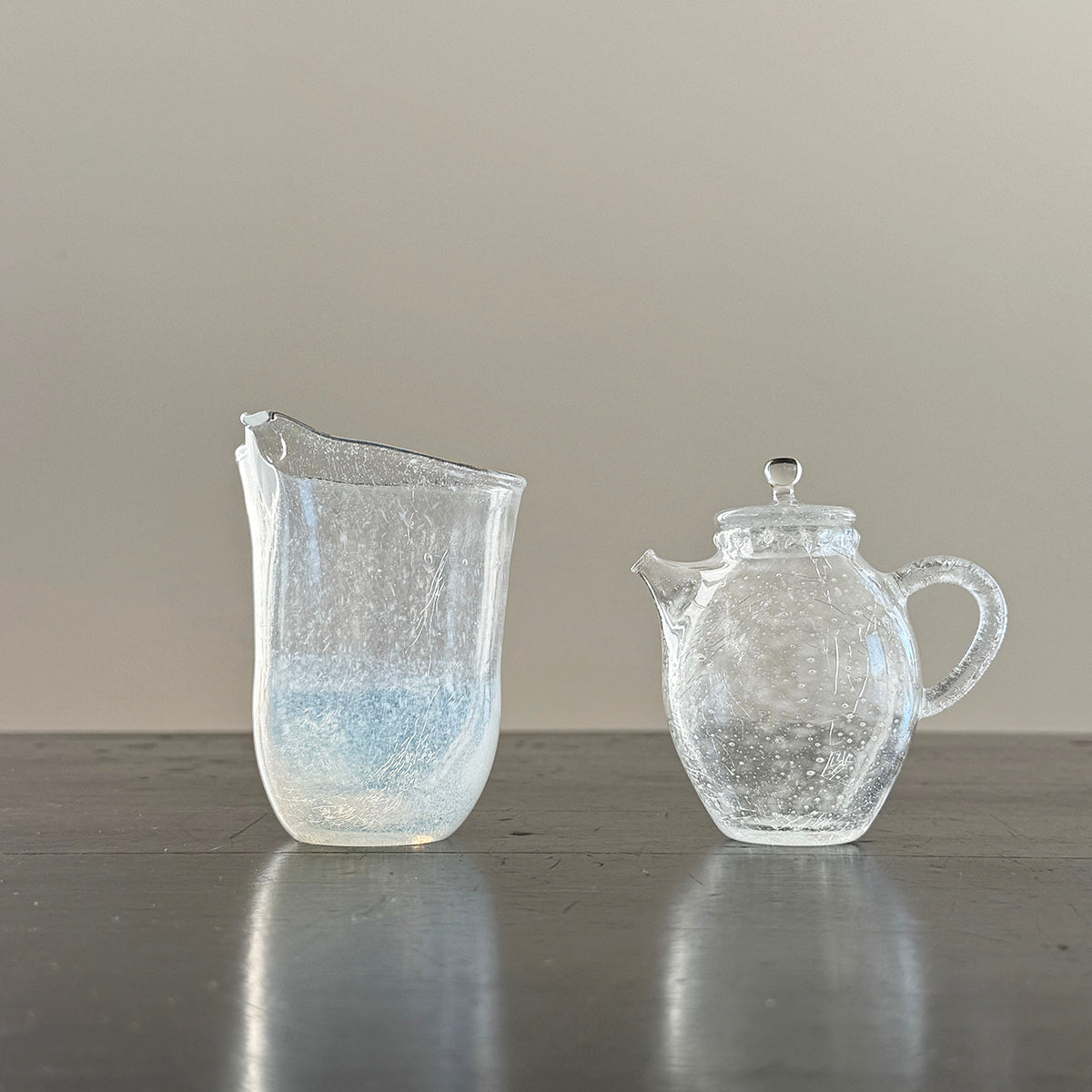 No box available. Glass is not dishwasher safe and is suitable for tea. Avoid thermal shock by exposing cold glass to extremely hot/cold temperatures; the nature of hand-blown glass creates differences in size, shape, and bubble/cracking effects. Please check the dimensions and capacity, as items are smaller than they appear.
