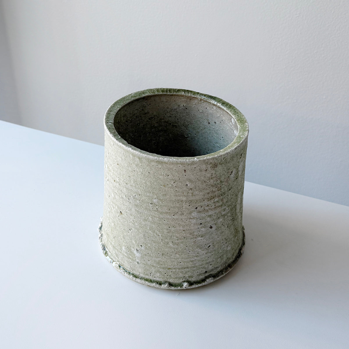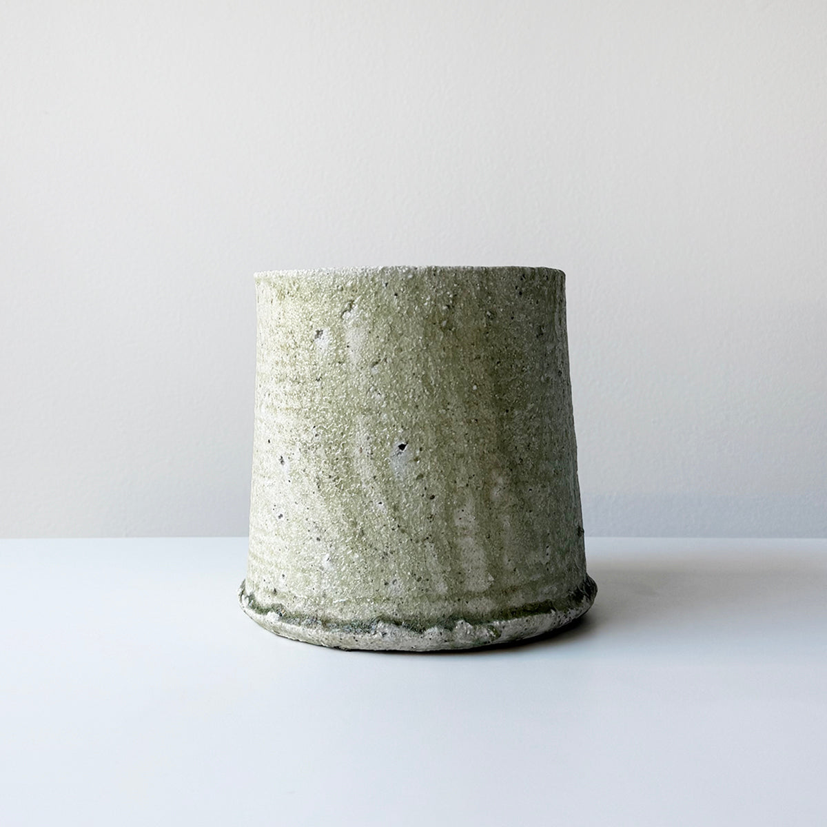 Yui Tsujimura, the son of renowned potter Shiro Tsujimura, found his passion for pottery right after finishing high school. In 2000, he set up his studio near his parents' home, deeply influenced by his family's love for ancient ceramics, especially Sue ware from the Sanage region. Drawing inspiration from this, Yui devised a unique technique of applying natural glaze to Sue pottery. He fires his pieces in a self-constructed underground kiln using his original firing method, creating a distinctive green luminescence.