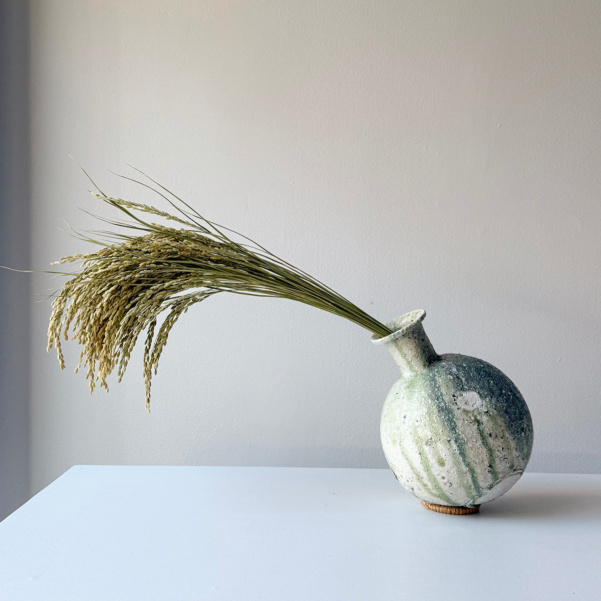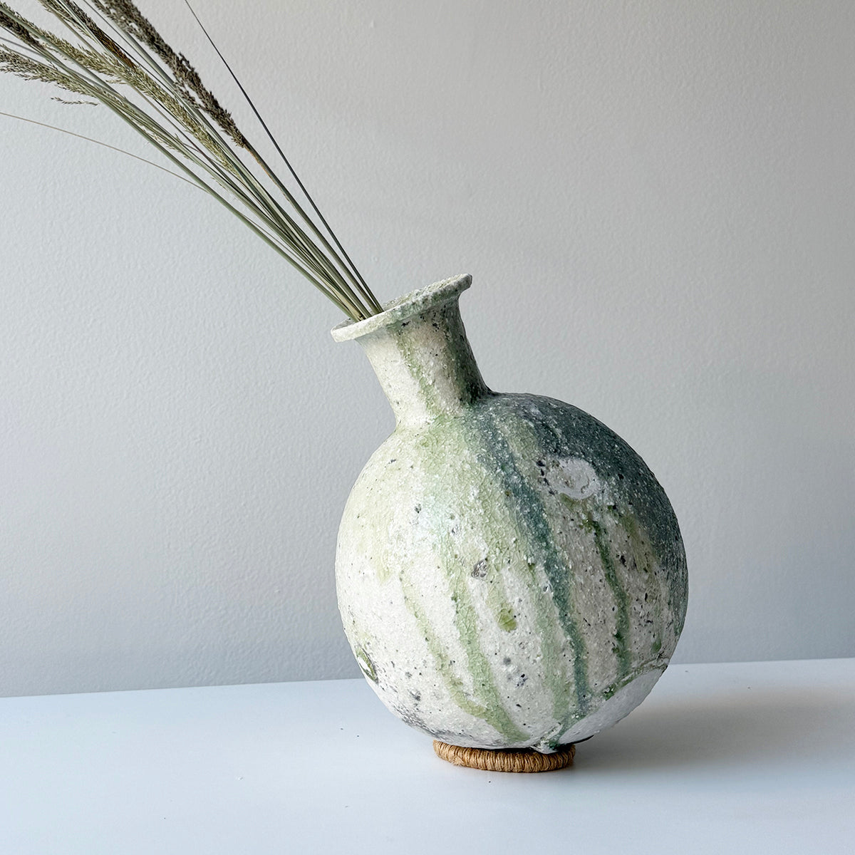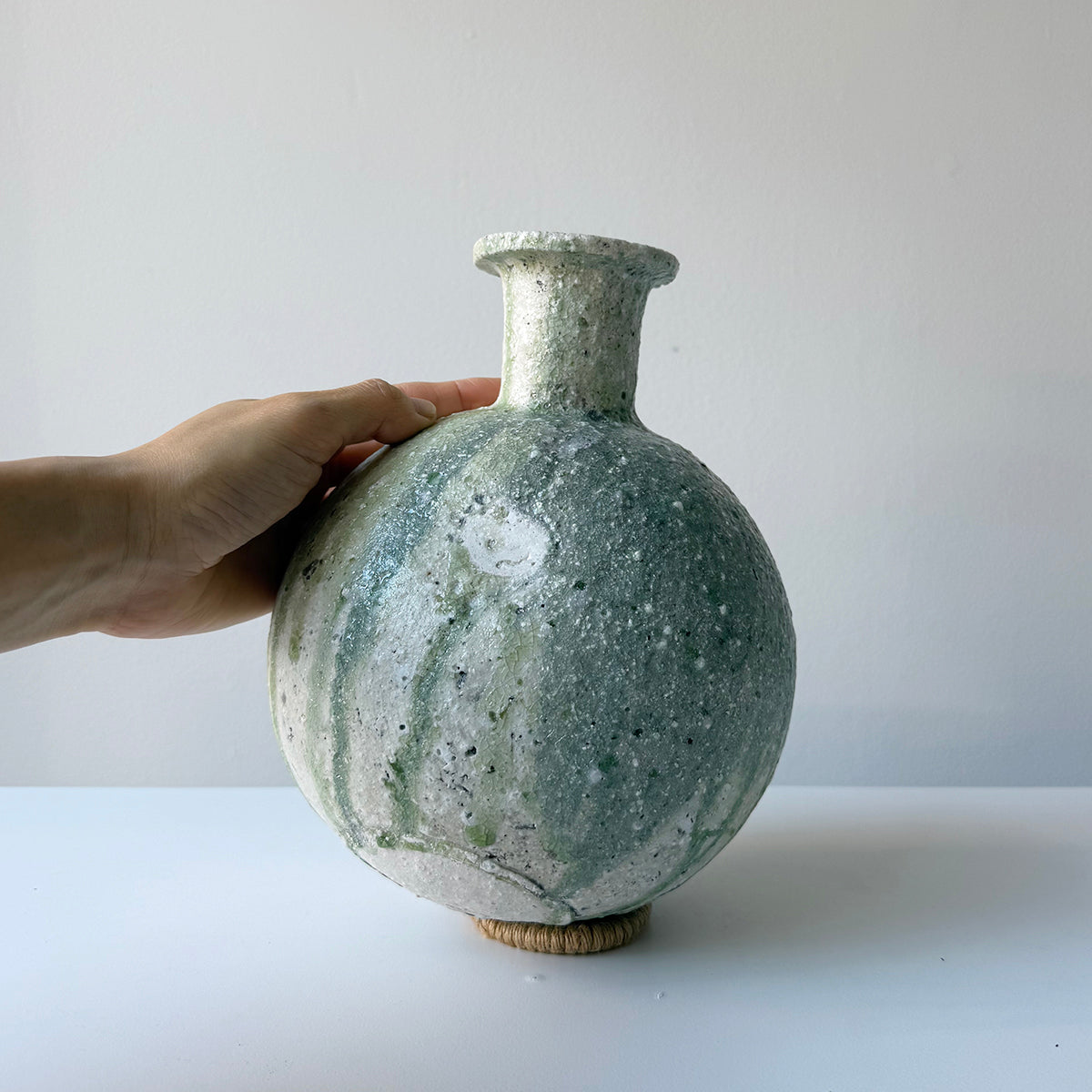Yui Tsujimura, the son of renowned potter Shiro Tsujimura, found his passion for pottery right after finishing high school. In 2000, he set up his studio near his parents' home, deeply influenced by his family's love for ancient ceramics, especially Sue ware from the Sanage region. Drawing inspiration from this, Yui devised a unique technique of applying natural glaze to Sue pottery. He fires his pieces in a self-constructed underground kiln using his original firing method, creating a distinctive green luminescence.