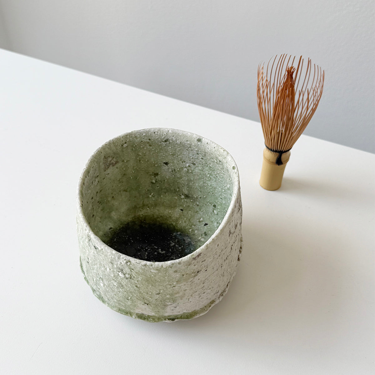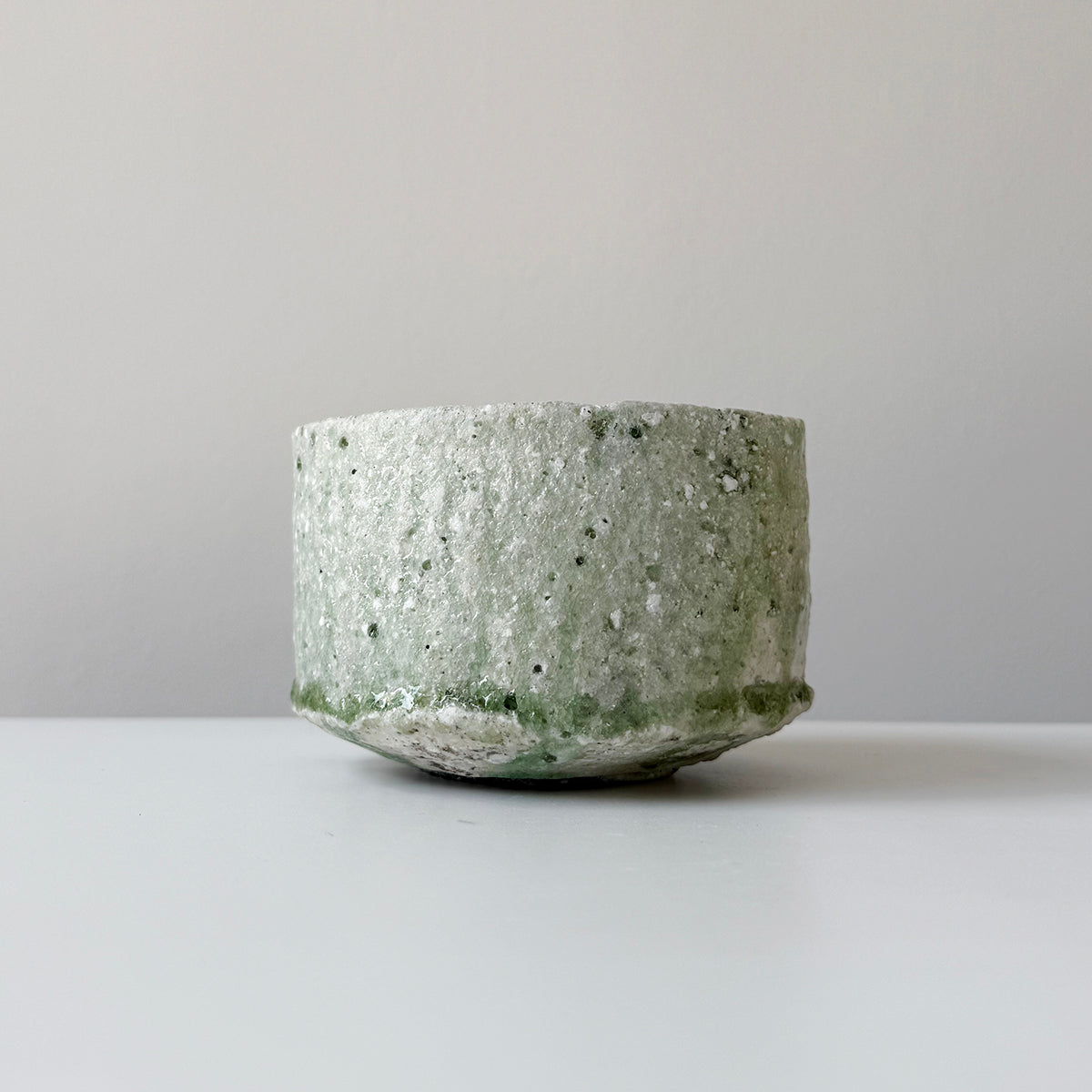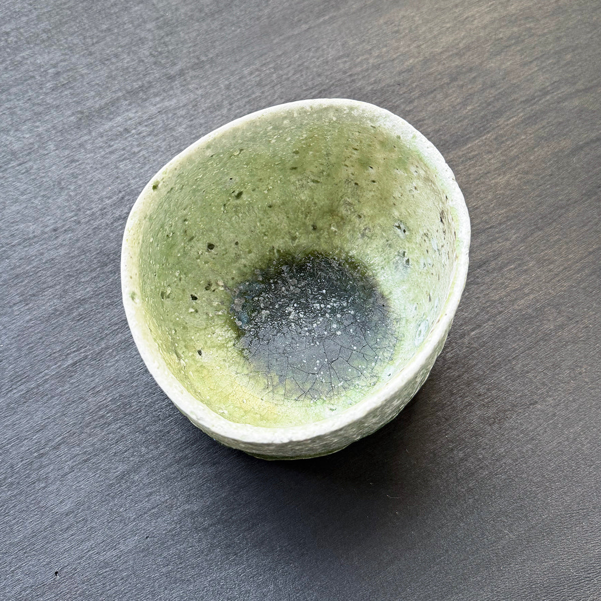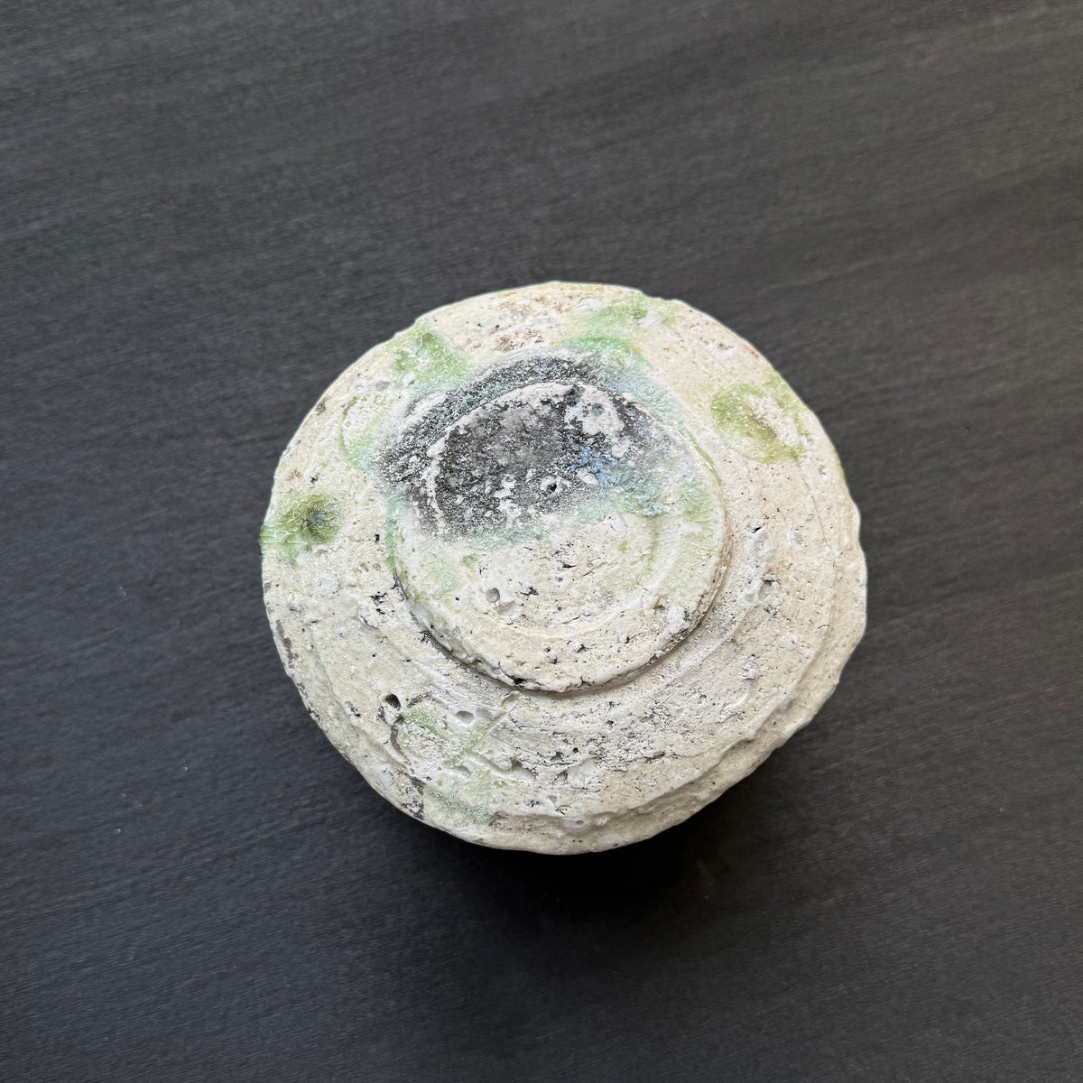Yui Tsujimura, the son of renowned potter Shiro Tsujimura, found his passion for pottery right after finishing high school. In 2000, he set up his studio near his parents' home, deeply influenced by his family's love for ancient ceramics, especially Sue ware from the Sanage region. Drawing inspiration from this, Yui devised a unique technique of applying natural glaze to Sue pottery. He fires his pieces in a self-constructed underground kiln using his original firing method, creating a distinctive green luminescence.